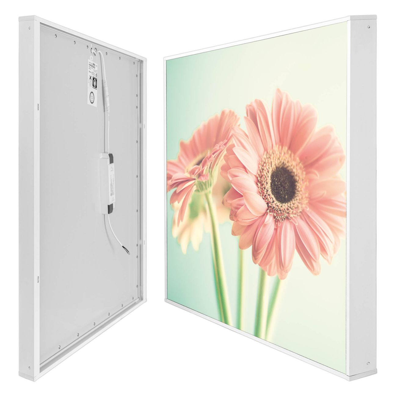 banjado LED Wandleuchte Sie erhalten hier eine stimmungsvolle Lichtquelle bestehend aus dem Set: Smart LED Panel mit Trafo, Motivscheibe (Motiv: Fünf Gerbera) und Rahmen. Der Aufbau ist denkbar einfach, Sie erhalten eine detaillierte Aufbauanleitung. Die komplette Leuchte kann sowohl an der Wand angeschlossen werden als auch als Deckenleuchte. Die Gesamtgröße der Lampe ist 62,5 x 62,5 x 4,5cm (HxBxT). Das Set besteht aus: LED Panel mit Trafo, Rahmen und Motivbild zum Selbstaufbau.