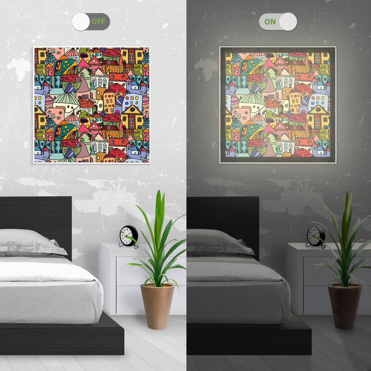 - Aussehen: Tags ein Wandbild, Nachts eine Lampe