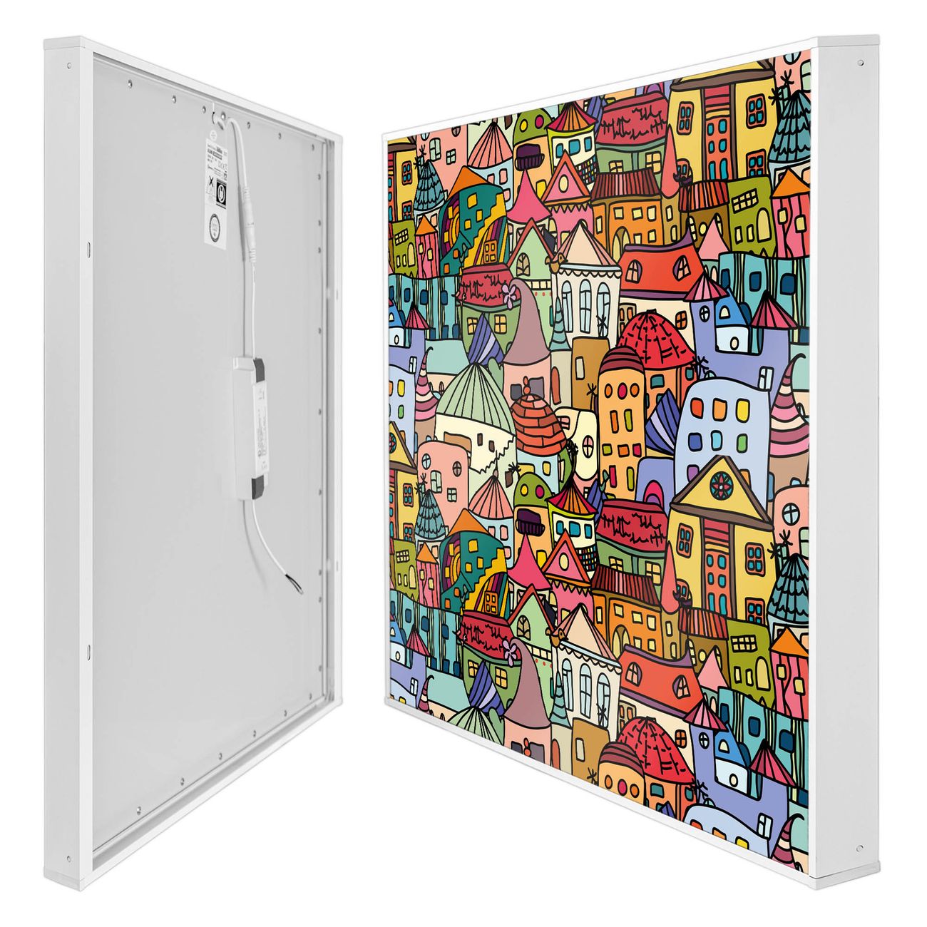 banjado LED Wandleuchte Sie erhalten hier eine stimmungsvolle Lichtquelle bestehend aus dem Set: Smart LED Panel mit Trafo, Motivscheibe (Motiv: Funky Town) und Rahmen. Der Aufbau ist denkbar einfach, Sie erhalten eine detaillierte Aufbauanleitung. Die komplette Leuchte kann sowohl an der Wand angeschlossen werden als auch als Deckenleuchte. Die Gesamtgröße der Lampe ist 62,5 x 62,5 x 4,5cm (HxBxT). Das Set besteht aus: LED Panel mit Trafo, Rahmen und Motivbild zum Selbstaufbau.
