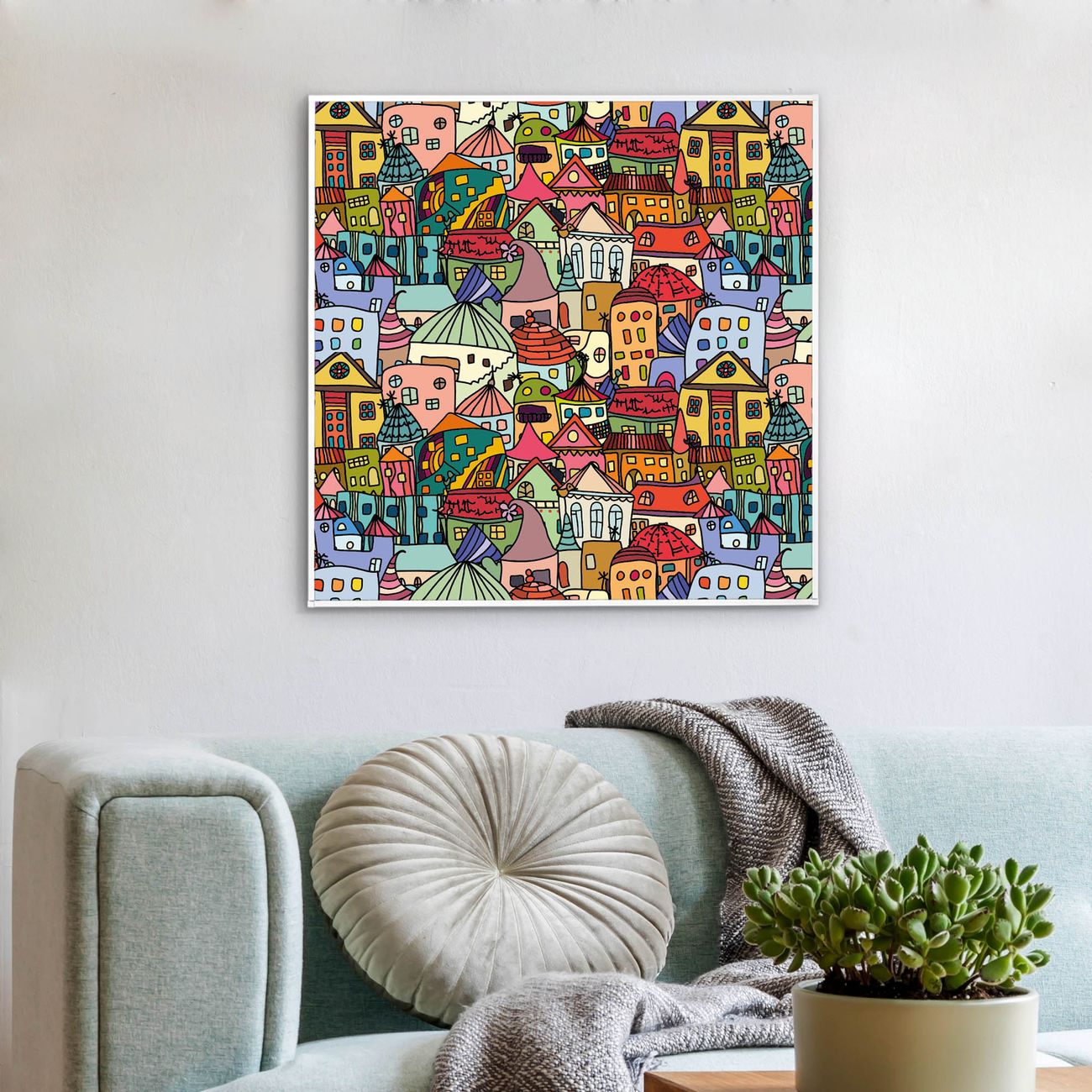 Mit der banjado smarten LED Wandleuchte mit Motiv Funky Town schaffen Sie in Ihren Räumen eine besondere Atmosphäre. Abends spendet die Wandlampe Licht und tagsüber haben Sie ein stimmungsvolles Wandbild. Die Leuchte besteht aus einem zeitlosen weißen Rahmen, in den das smarte WLAN LED Paneel sowie das Bild eingefasst wird. Die Montage ist denkbar einfach, Sie erhalten eine detaillierte Aufbauanleitung sowie Montagematerial. Eine angenehme Lichtquelle erhöht nachweislich das Wohlbefinden. Das Motiv der Leuchte lässt sich leicht wechseln, so können Sie Ihre Wohnräume individuell gestalten. Die Montage ist an der Wand oder an der Decke möglich.