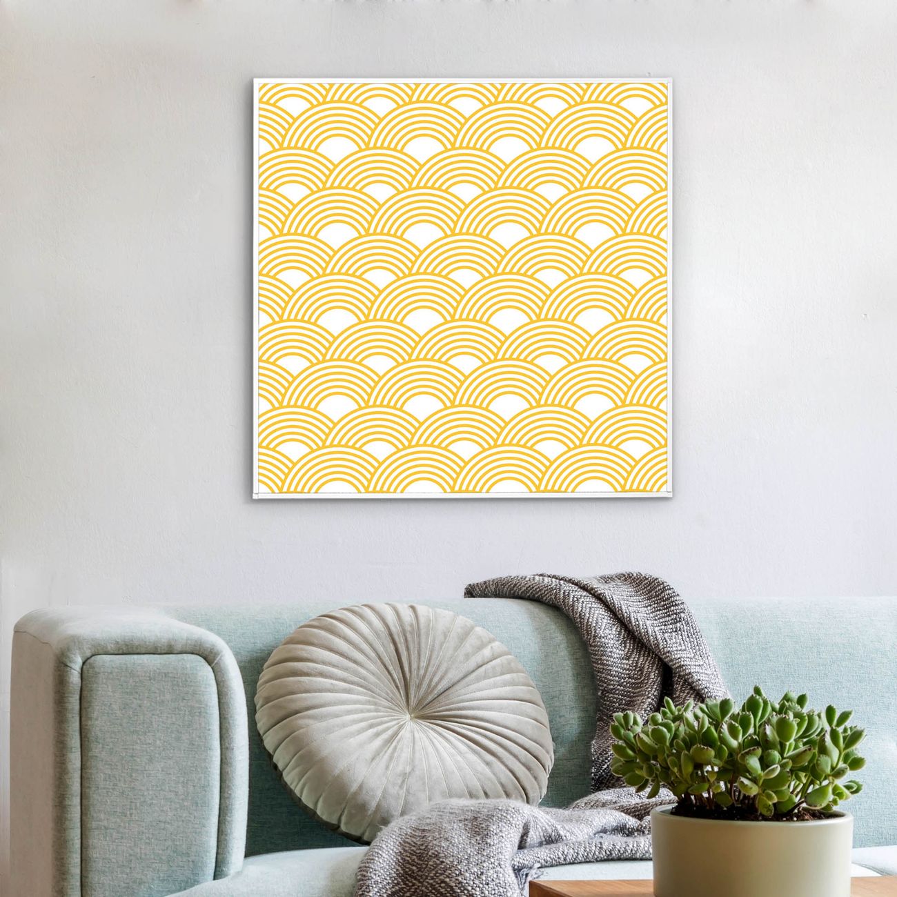 Mit der banjado smarten LED Wandleuchte mit Motiv Gelbe Wellen schaffen Sie in Ihren Räumen eine besondere Atmosphäre. Abends spendet die Wandlampe Licht und tagsüber haben Sie ein stimmungsvolles Wandbild. Die Leuchte besteht aus einem zeitlosen weißen Rahmen, in den das smarte WLAN LED Paneel sowie das Bild eingefasst wird. Die Montage ist denkbar einfach, Sie erhalten eine detaillierte Aufbauanleitung sowie Montagematerial. Eine angenehme Lichtquelle erhöht nachweislich das Wohlbefinden. Das Motiv der Leuchte lässt sich leicht wechseln, so können Sie Ihre Wohnräume individuell gestalten. Die Montage ist an der Wand oder an der Decke möglich.