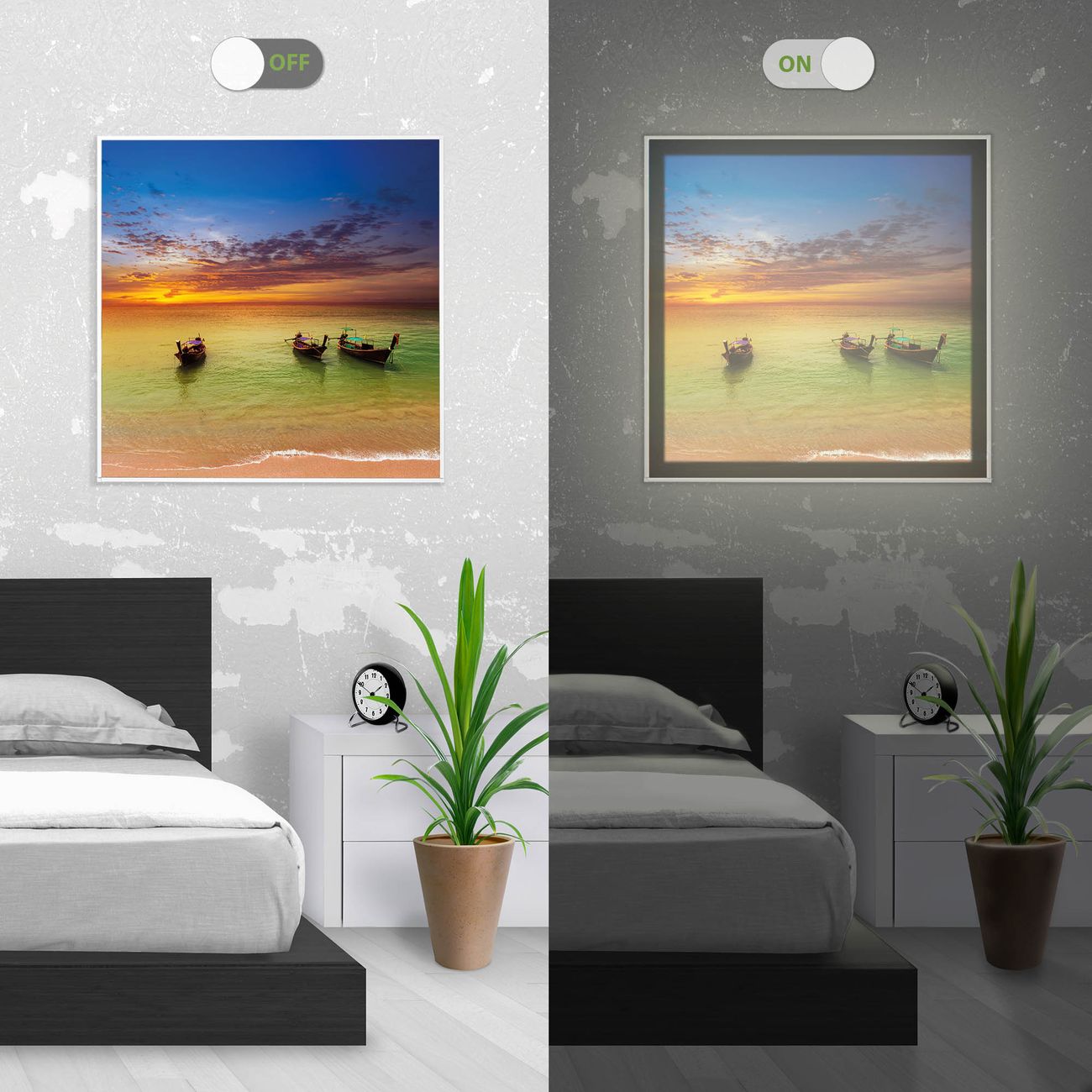 - Aussehen: Tags ein Wandbild, Nachts eine Lampe