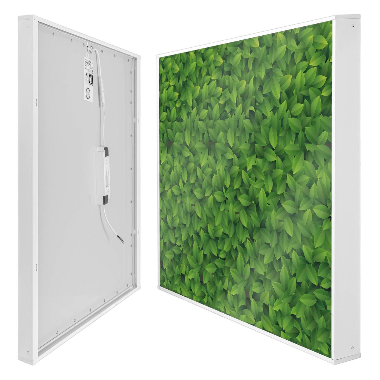 banjado LED Wandleuchte Sie erhalten hier eine stimmungsvolle Lichtquelle bestehend aus dem Set: Smart LED Panel mit Trafo, Motivscheibe (Motiv: Grüne Blätter) und Rahmen. Der Aufbau ist denkbar einfach, Sie erhalten eine detaillierte Aufbauanleitung. Die komplette Leuchte kann sowohl an der Wand angeschlossen werden als auch als Deckenleuchte. Die Gesamtgröße der Lampe ist 62,5 x 62,5 x 4,5cm (HxBxT). Das Set besteht aus: LED Panel mit Trafo, Rahmen und Motivbild zum Selbstaufbau.