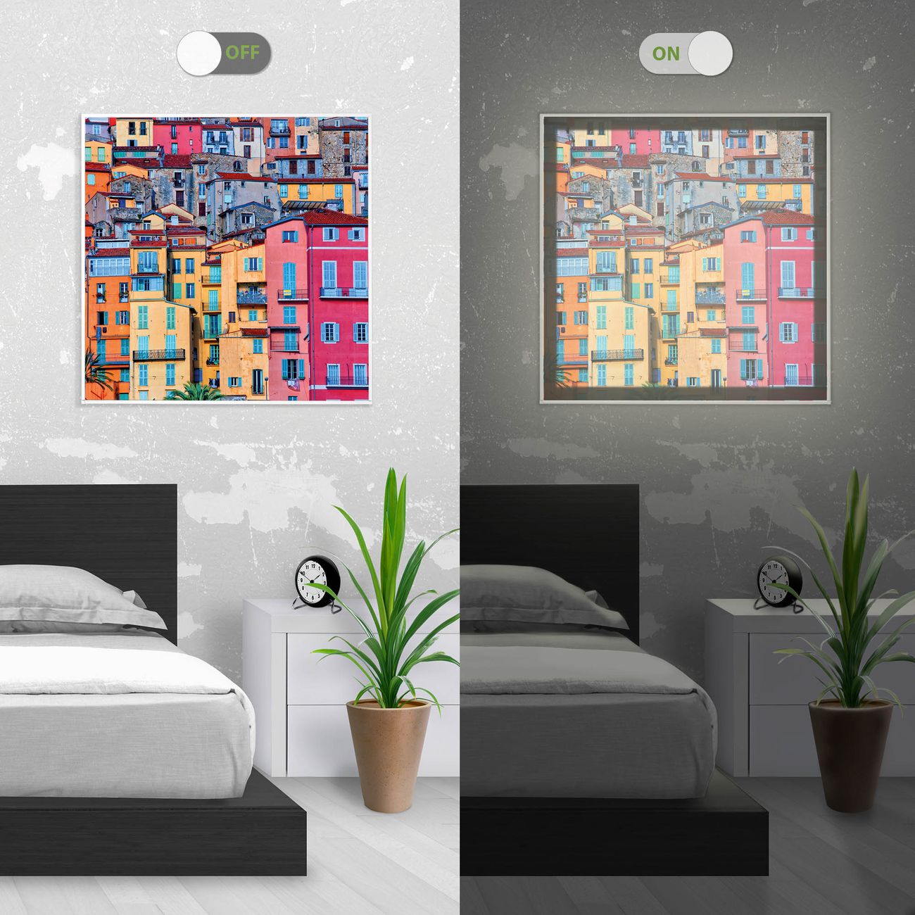 - Aussehen: Tags ein Wandbild, Nachts eine Lampe