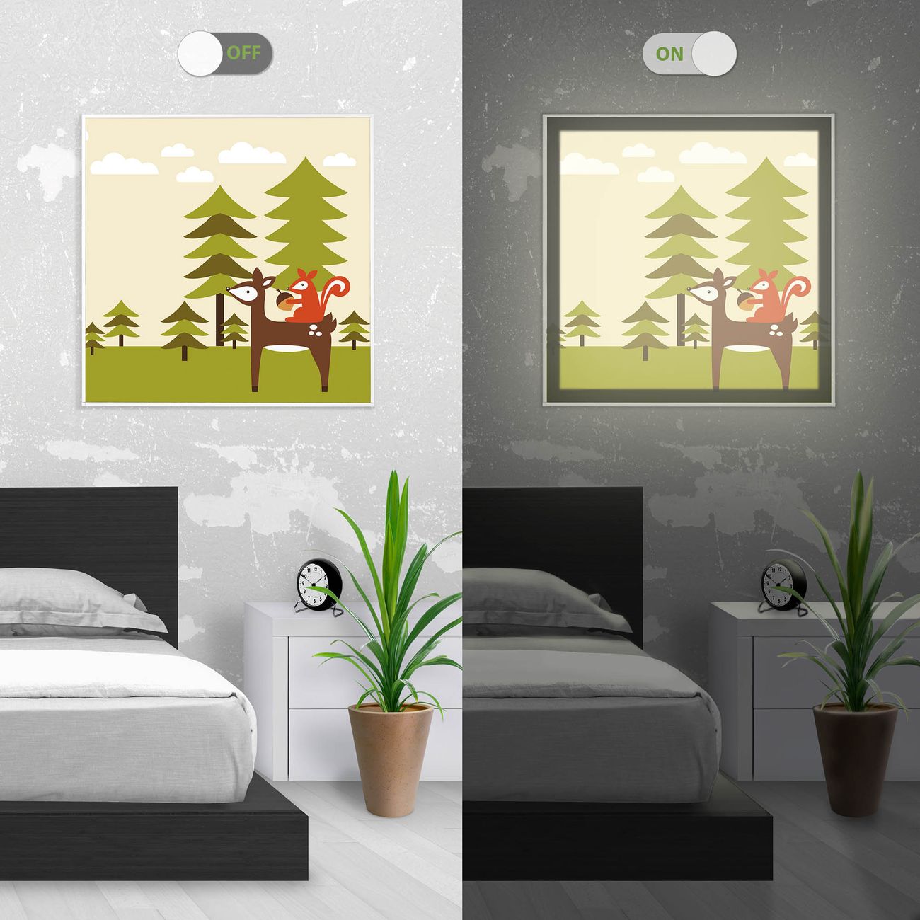 - Aussehen: Tags ein Wandbild, Nachts eine Lampe