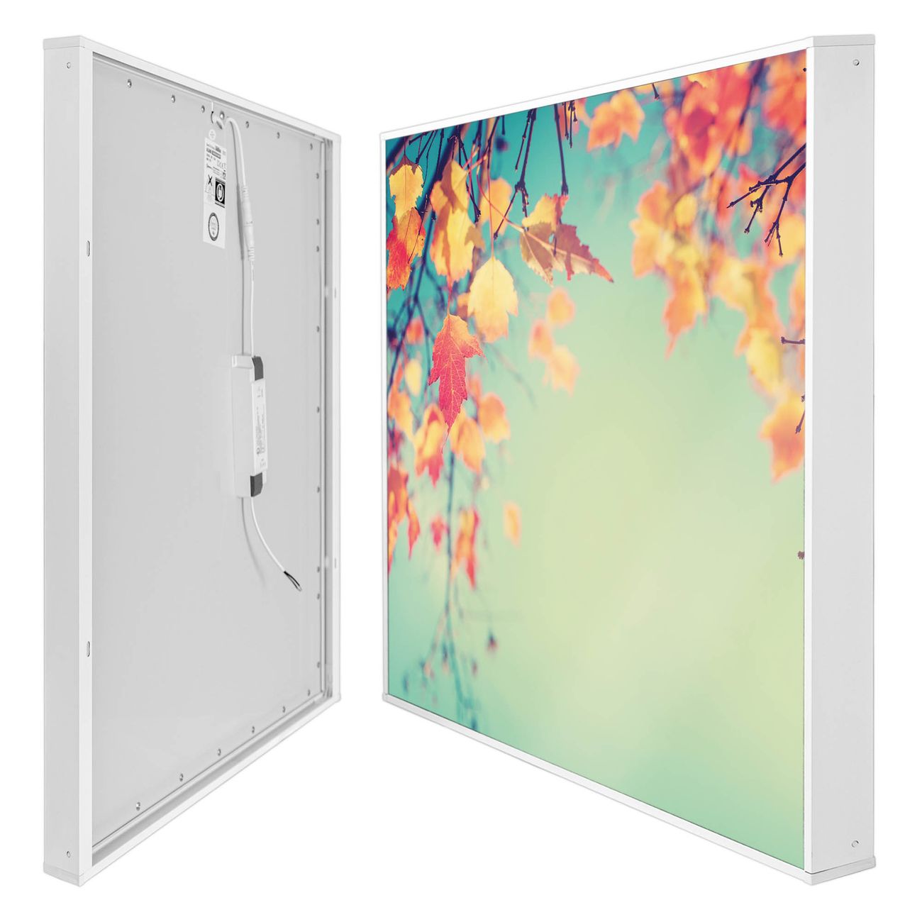 banjado LED Wandleuchte Sie erhalten hier eine stimmungsvolle Lichtquelle bestehend aus dem Set: Smart LED Panel mit Trafo, Motivscheibe (Motiv: Herbst) und Rahmen. Der Aufbau ist denkbar einfach, Sie erhalten eine detaillierte Aufbauanleitung. Die komplette Leuchte kann sowohl an der Wand angeschlossen werden als auch als Deckenleuchte. Die Gesamtgröße der Lampe ist 62,5 x 62,5 x 4,5cm (HxBxT). Das Set besteht aus: LED Panel mit Trafo, Rahmen und Motivbild zum Selbstaufbau.