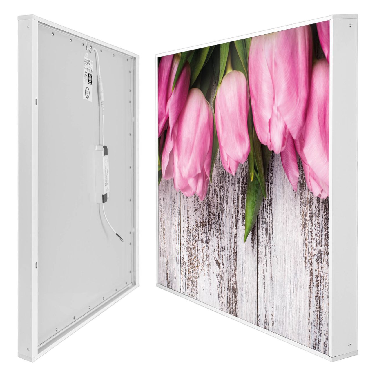 banjado LED Wandleuchte Sie erhalten hier eine stimmungsvolle Lichtquelle bestehend aus dem Set: Smart LED Panel mit Trafo, Motivscheibe (Motiv: Holz und Tulpen) und Rahmen. Der Aufbau ist denkbar einfach, Sie erhalten eine detaillierte Aufbauanleitung. Die komplette Leuchte kann sowohl an der Wand angeschlossen werden als auch als Deckenleuchte. Die Gesamtgröße der Lampe ist 62,5 x 62,5 x 4,5cm (HxBxT). Das Set besteht aus: LED Panel mit Trafo, Rahmen und Motivbild zum Selbstaufbau.