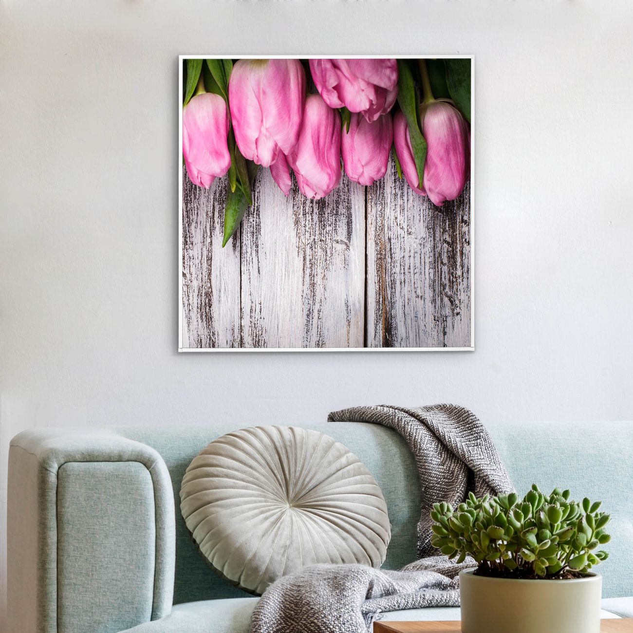 banjado Licht Bild LED Lampe Smart Home Motiv Holz und Tulpen