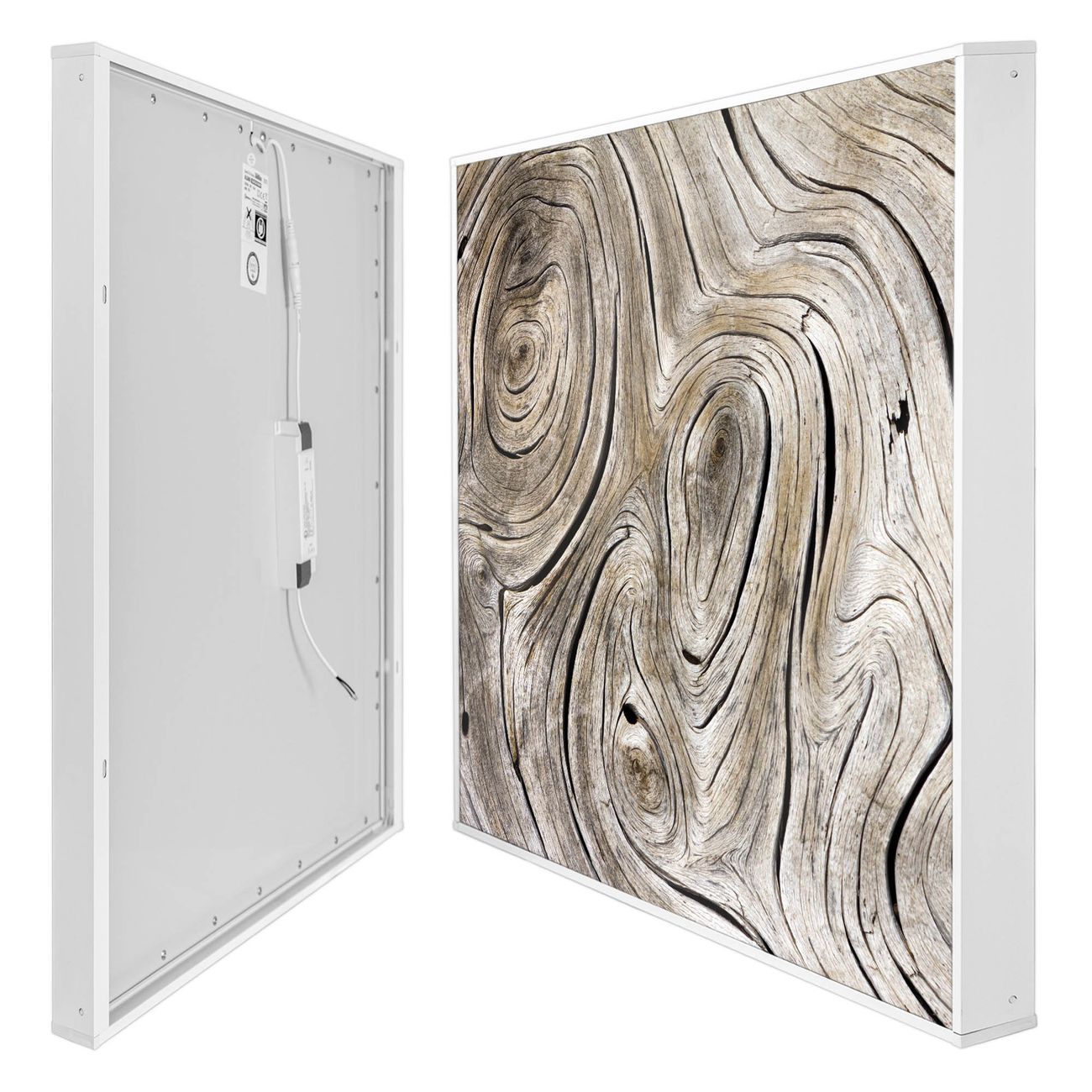 banjado LED Wandleuchte Sie erhalten hier eine stimmungsvolle Lichtquelle bestehend aus dem Set: Smart LED Panel mit Trafo, Motivscheibe (Motiv: Holzwirbel) und Rahmen. Der Aufbau ist denkbar einfach, Sie erhalten eine detaillierte Aufbauanleitung. Die komplette Leuchte kann sowohl an der Wand angeschlossen werden als auch als Deckenleuchte. Die Gesamtgröße der Lampe ist 62,5 x 62,5 x 4,5cm (HxBxT). Das Set besteht aus: LED Panel mit Trafo, Rahmen und Motivbild zum Selbstaufbau.