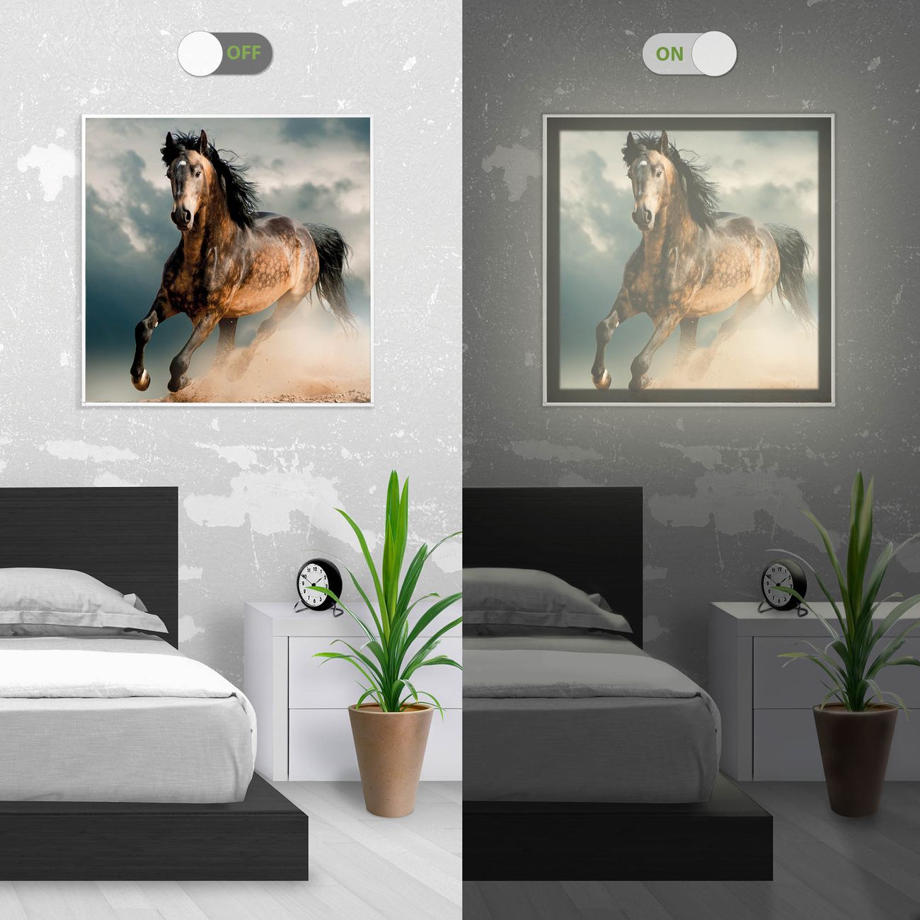 - Aussehen: Tags ein Wandbild, Nachts eine Lampe