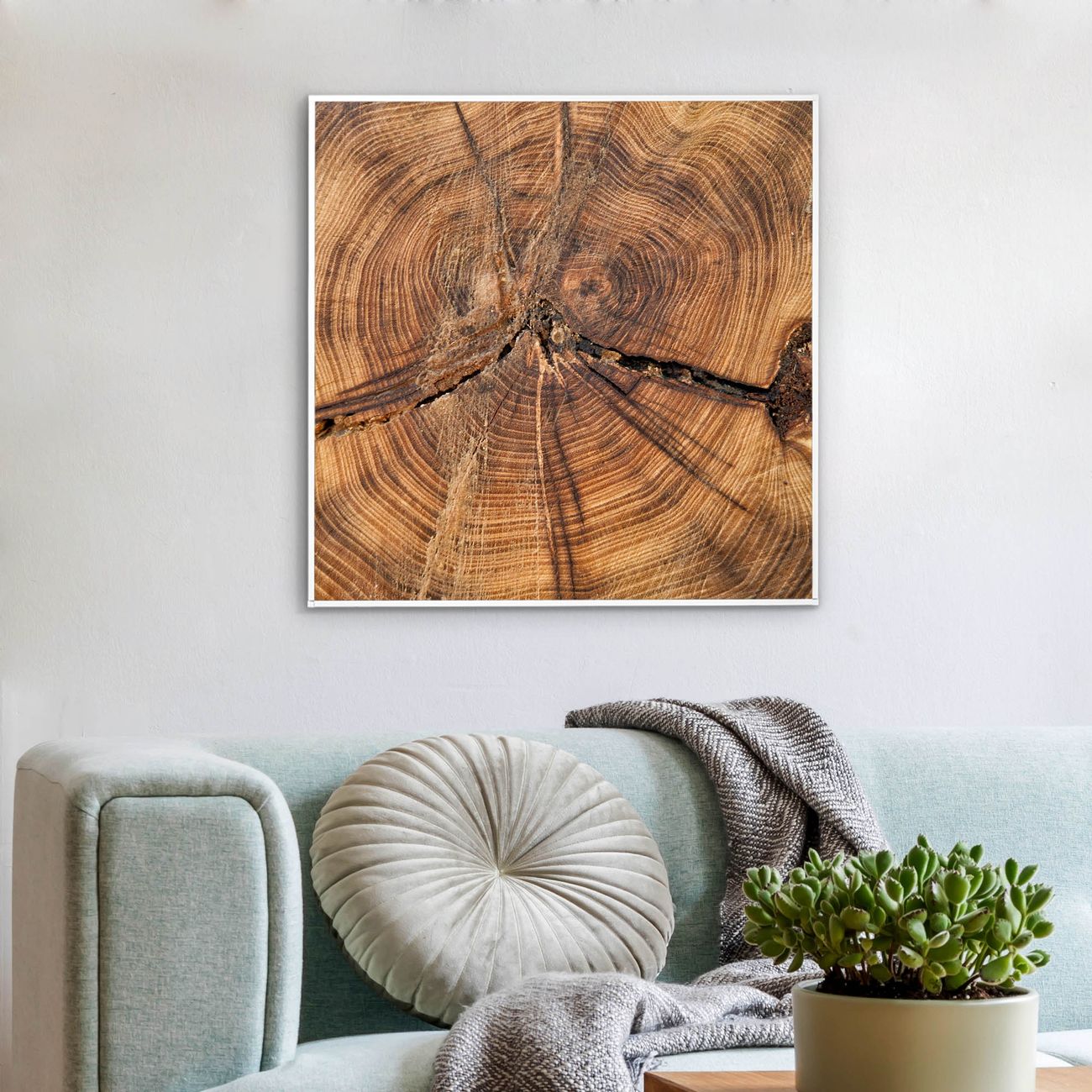 Mit der banjado smarten LED Wandleuchte mit Motiv Jahresringe schaffen Sie in Ihren Räumen eine besondere Atmosphäre. Abends spendet die Wandlampe Licht und tagsüber haben Sie ein stimmungsvolles Wandbild. Die Leuchte besteht aus einem zeitlosen weißen Rahmen, in den das smarte WLAN LED Paneel sowie das Bild eingefasst wird. Die Montage ist denkbar einfach, Sie erhalten eine detaillierte Aufbauanleitung sowie Montagematerial. Eine angenehme Lichtquelle erhöht nachweislich das Wohlbefinden. Das Motiv der Leuchte lässt sich leicht wechseln, so können Sie Ihre Wohnräume individuell gestalten. Die Montage ist an der Wand oder an der Decke möglich.