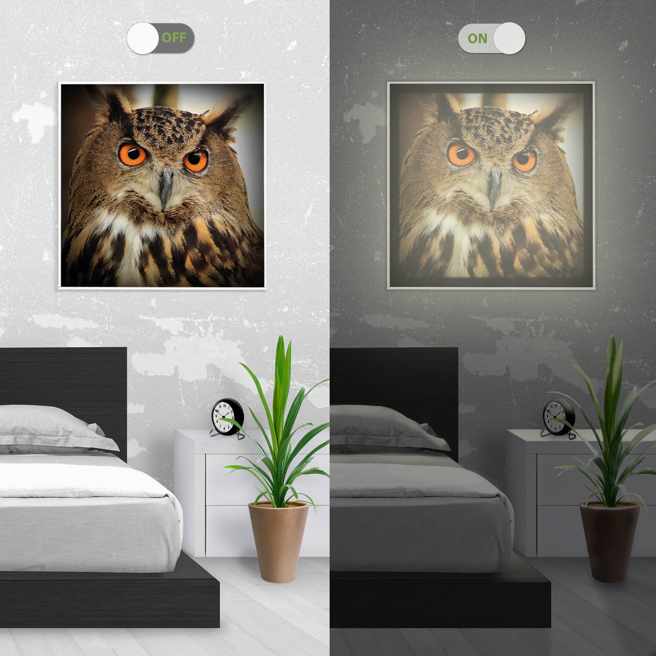 - Aussehen: Tags ein Wandbild, Nachts eine Lampe