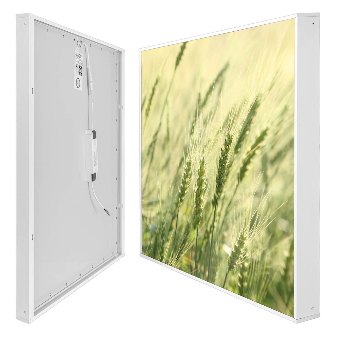banjado LED Wandleuchte Sie erhalten hier eine stimmungsvolle Lichtquelle bestehend aus dem Set: Smart LED Panel mit Trafo, Motivscheibe (Motiv: Junges Getreide) und Rahmen. Der Aufbau ist denkbar einfach, Sie erhalten eine detaillierte Aufbauanleitung. Die komplette Leuchte kann sowohl an der Wand angeschlossen werden als auch als Deckenleuchte. Die Gesamtgröße der Lampe ist 62,5 x 62,5 x 4,5cm (HxBxT). Das Set besteht aus: LED Panel mit Trafo, Rahmen und Motivbild zum Selbstaufbau.