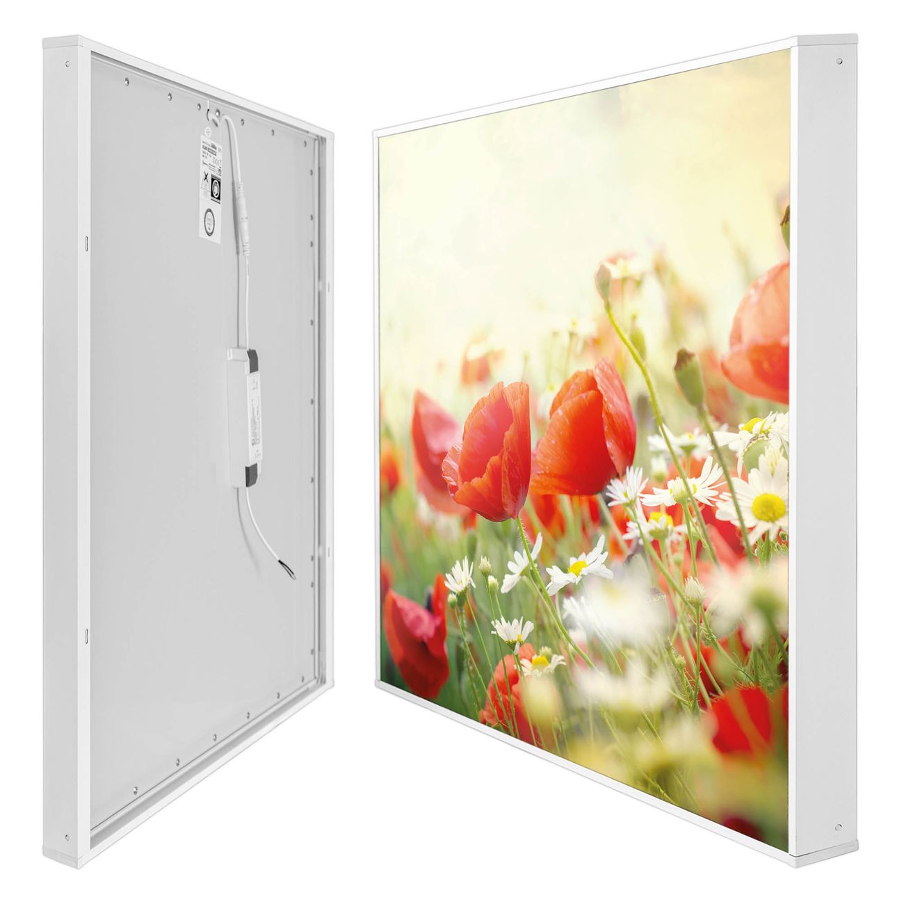 banjado LED Wandleuchte Sie erhalten hier eine stimmungsvolle Lichtquelle bestehend aus dem Set: Smart LED Panel mit Trafo, Motivscheibe (Motiv: Kamille Und Mohn) und Rahmen. Der Aufbau ist denkbar einfach, Sie erhalten eine detaillierte Aufbauanleitung. Die komplette Leuchte kann sowohl an der Wand angeschlossen werden als auch als Deckenleuchte. Die Gesamtgröße der Lampe ist 62,5 x 62,5 x 4,5cm (HxBxT). Das Set besteht aus: LED Panel mit Trafo, Rahmen und Motivbild zum Selbstaufbau.