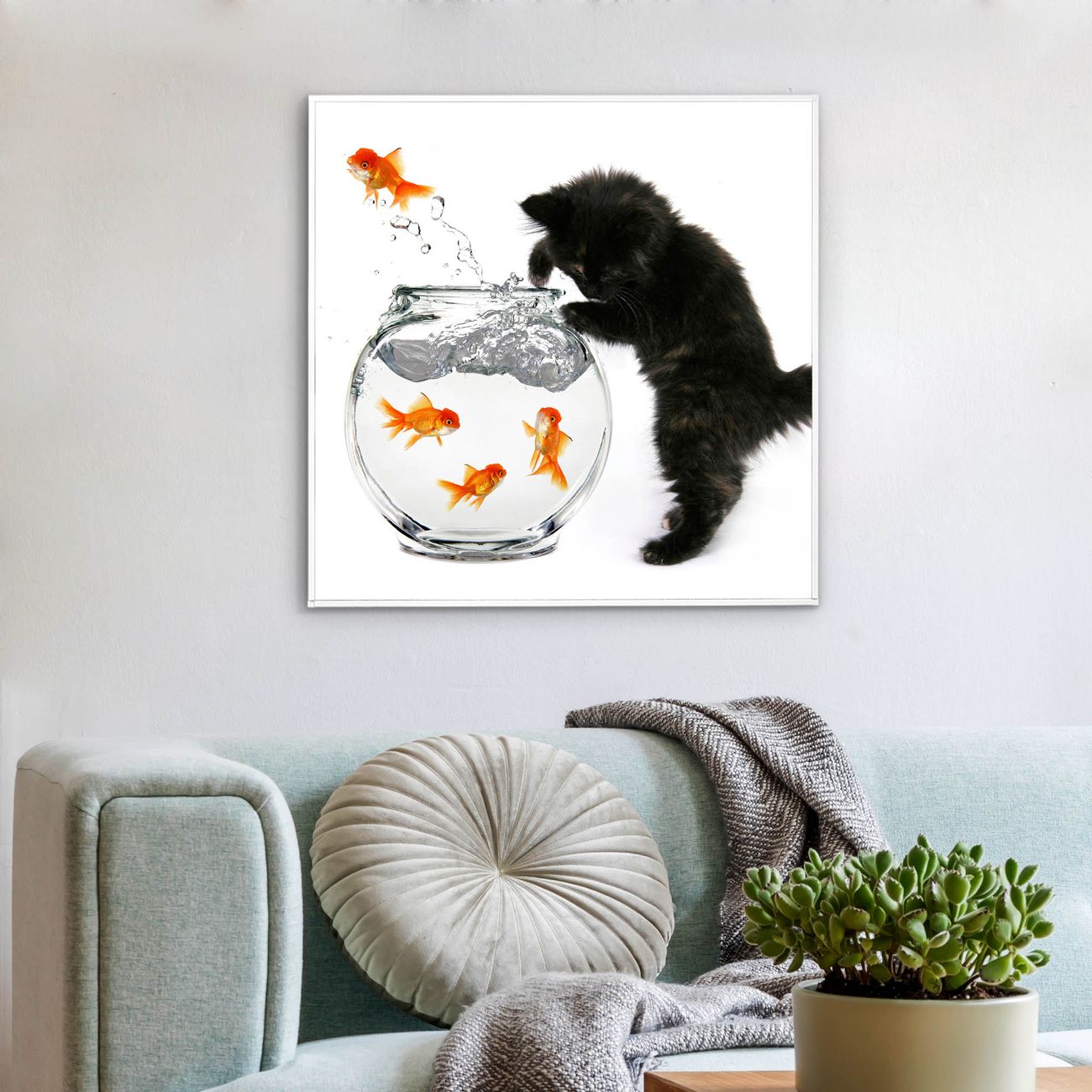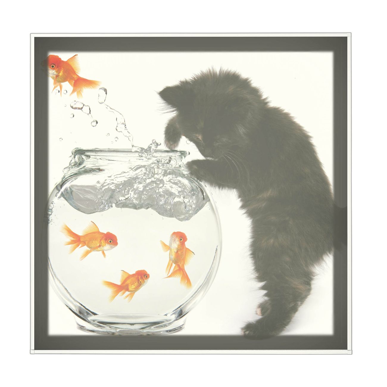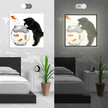 banjado Licht Bild LED Lampe Smart Home Motiv Katze Und Fisch