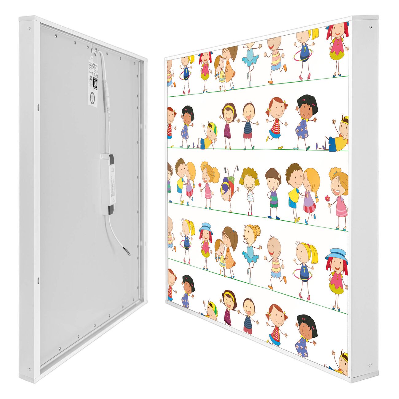 banjado LED Wandleuchte Sie erhalten hier eine stimmungsvolle Lichtquelle bestehend aus dem Set: Smart LED Panel mit Trafo, Motivscheibe (Motiv: Kinder) und Rahmen. Der Aufbau ist denkbar einfach, Sie erhalten eine detaillierte Aufbauanleitung. Die komplette Leuchte kann sowohl an der Wand angeschlossen werden als auch als Deckenleuchte. Die Gesamtgröße der Lampe ist 62,5 x 62,5 x 4,5cm (HxBxT). Das Set besteht aus: LED Panel mit Trafo, Rahmen und Motivbild zum Selbstaufbau.