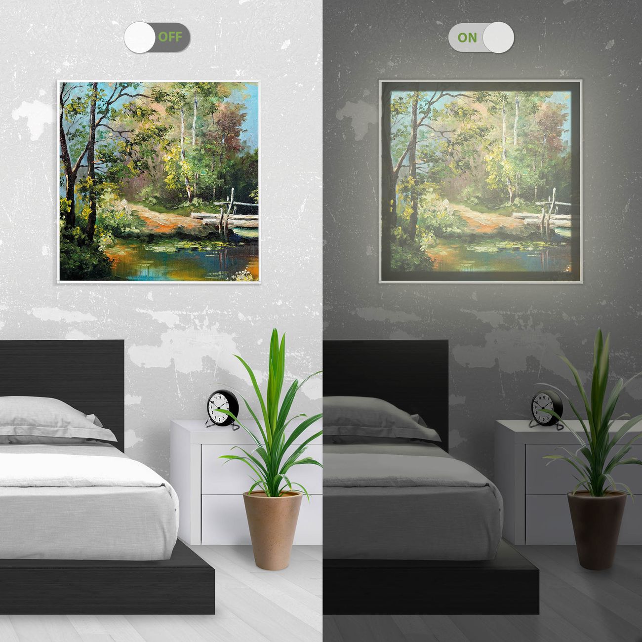 - Aussehen: Tags ein Wandbild, Nachts eine Lampe