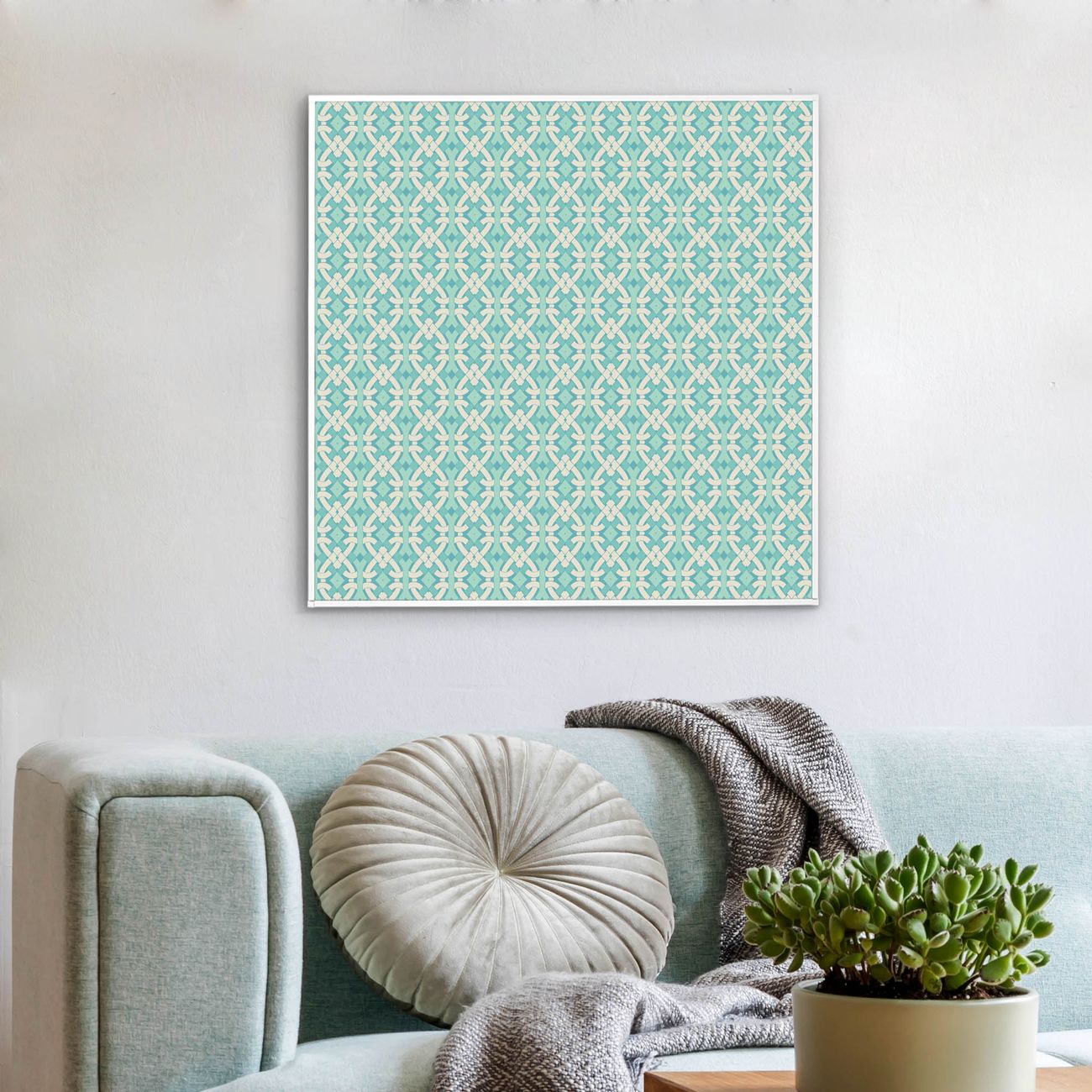 Mit der banjado smarten LED Wandleuchte mit Motiv Knoten Türkis schaffen Sie in Ihren Räumen eine besondere Atmosphäre. Abends spendet die Wandlampe Licht und tagsüber haben Sie ein stimmungsvolles Wandbild. Die Leuchte besteht aus einem zeitlosen weißen Rahmen, in den das smarte WLAN LED Paneel sowie das Bild eingefasst wird. Die Montage ist denkbar einfach, Sie erhalten eine detaillierte Aufbauanleitung sowie Montagematerial. Eine angenehme Lichtquelle erhöht nachweislich das Wohlbefinden. Das Motiv der Leuchte lässt sich leicht wechseln, so können Sie Ihre Wohnräume individuell gestalten. Die Montage ist an der Wand oder an der Decke möglich.