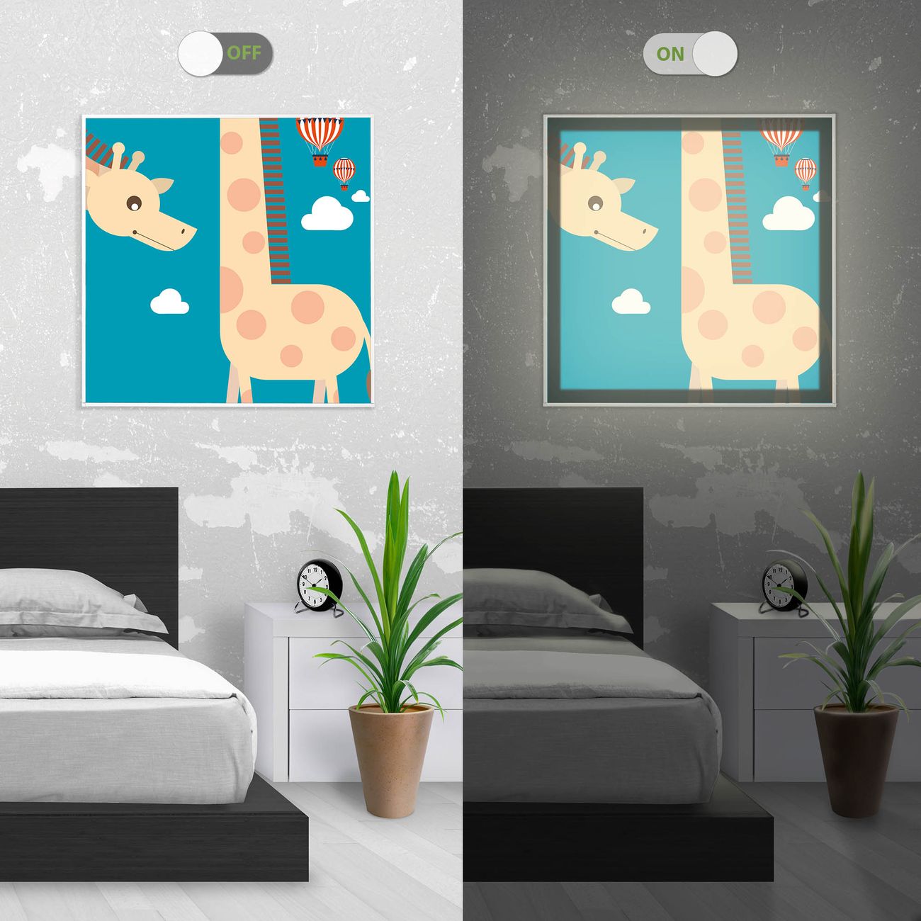 - Aussehen: Tags ein Wandbild, Nachts eine Lampe