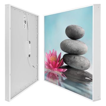 Mit der banjado smarten LED Wandleuchte mit Motiv Lotus Und Steine schaffen Sie in Ihren Räumen eine besondere Atmosphäre. Abends spendet die Wandlampe Licht und tagsüber haben Sie ein stimmungsvolles Wandbild. Die Leuchte besteht aus einem zeitlosen weißen Rahmen, in den das smarte WLAN LED Paneel sowie das Bild eingefasst wird. Die Montage ist denkbar einfach, Sie erhalten eine detaillierte Aufbauanleitung sowie Montagematerial. Eine angenehme Lichtquelle erhöht nachweislich das Wohlbefinden. Das Motiv der Leuchte lässt sich leicht wechseln, so können Sie Ihre Wohnräume individuell gestalten. Die Montage ist an der Wand oder an der Decke möglich.