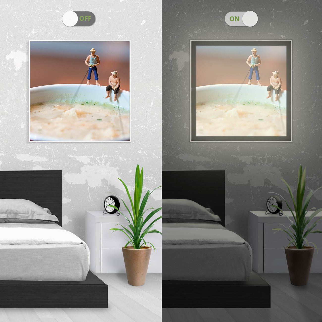 - Aussehen: Tags ein Wandbild, Nachts eine Lampe