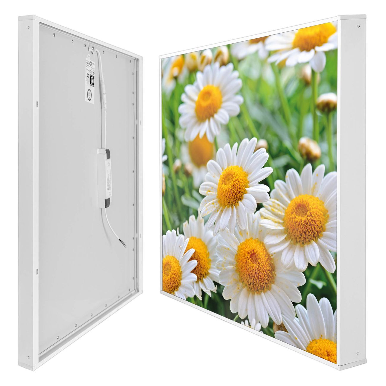 banjado LED Wandleuchte Sie erhalten hier eine stimmungsvolle Lichtquelle bestehend aus dem Set: Smart LED Panel mit Trafo, Motivscheibe (Motiv: Margeriten Illustration) und Rahmen. Der Aufbau ist denkbar einfach, Sie erhalten eine detaillierte Aufbauanleitung. Die komplette Leuchte kann sowohl an der Wand angeschlossen werden als auch als Deckenleuchte. Die Gesamtgröße der Lampe ist 62,5 x 62,5 x 4,5cm (HxBxT). Das Set besteht aus: LED Panel mit Trafo, Rahmen und Motivbild zum Selbstaufbau.