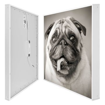 banjado LED Wandleuchte Sie erhalten hier eine stimmungsvolle Lichtquelle bestehend aus dem Set: Smart LED Panel mit Trafo, Motivscheibe (Motiv: Mops Porträt) und Rahmen. Der Aufbau ist denkbar einfach, Sie erhalten eine detaillierte Aufbauanleitung. Die komplette Leuchte kann sowohl an der Wand angeschlossen werden als auch als Deckenleuchte. Die Gesamtgröße der Lampe ist 62,5 x 62,5 x 4,5cm (HxBxT). Das Set besteht aus: LED Panel mit Trafo, Rahmen und Motivbild zum Selbstaufbau.