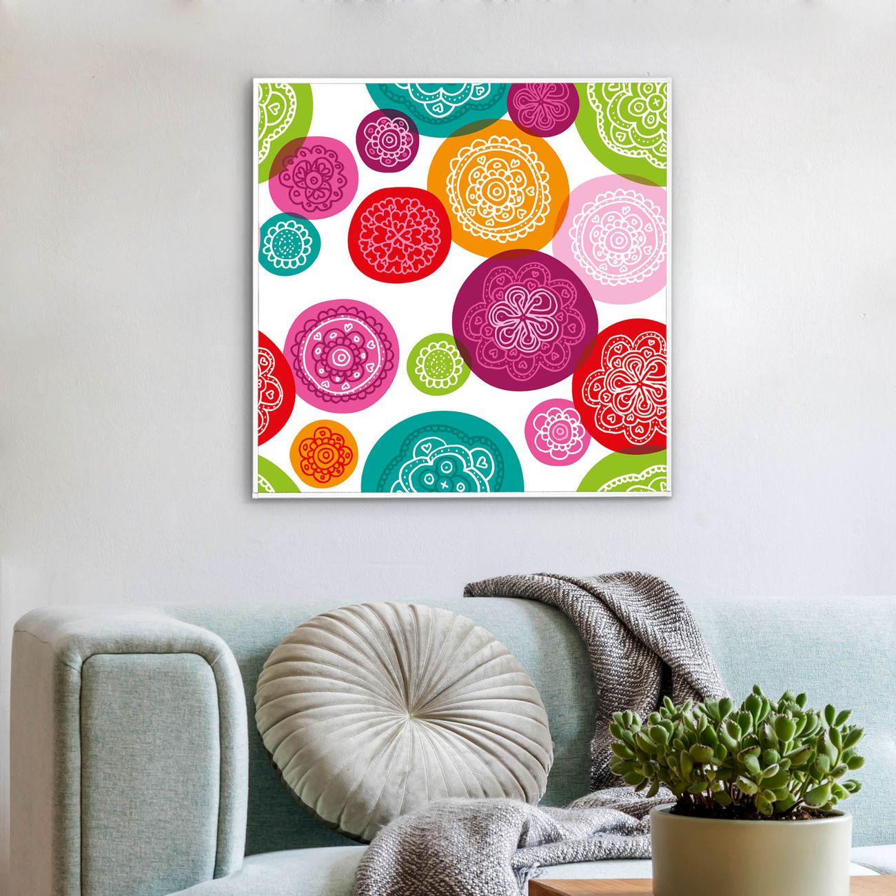 Mit der banjado smarten LED Wandleuchte mit Motiv Naive Blüten schaffen Sie in Ihren Räumen eine besondere Atmosphäre. Abends spendet die Wandlampe Licht und tagsüber haben Sie ein stimmungsvolles Wandbild. Die Leuchte besteht aus einem zeitlosen weißen Rahmen, in den das smarte WLAN LED Paneel sowie das Bild eingefasst wird. Die Montage ist denkbar einfach, Sie erhalten eine detaillierte Aufbauanleitung sowie Montagematerial. Eine angenehme Lichtquelle erhöht nachweislich das Wohlbefinden. Das Motiv der Leuchte lässt sich leicht wechseln, so können Sie Ihre Wohnräume individuell gestalten. Die Montage ist an der Wand oder an der Decke möglich.