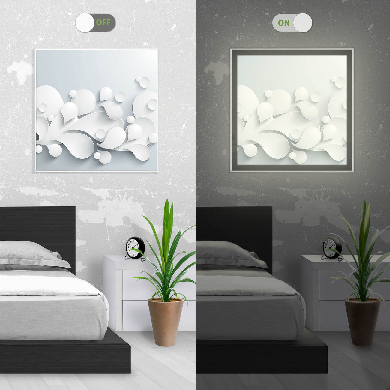Im eingeschalteten Zustand wirft das Bild einen Schatten wie in der ersten Ansicht zu sehen.