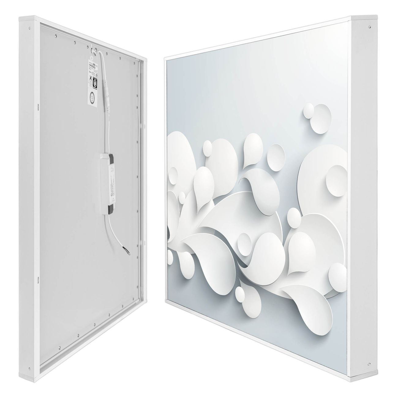 banjado LED Wandleuchte Sie erhalten hier eine stimmungsvolle Lichtquelle bestehend aus dem Set: Smart LED Panel mit Trafo, Motivscheibe (Motiv: Papiertropfen) und Rahmen. Der Aufbau ist denkbar einfach, Sie erhalten eine detaillierte Aufbauanleitung. Die komplette Leuchte kann sowohl an der Wand angeschlossen werden als auch als Deckenleuchte. Die Gesamtgröße der Lampe ist 62,5 x 62,5 x 4,5cm (HxBxT). Das Set besteht aus: LED Panel mit Trafo, Rahmen und Motivbild zum Selbstaufbau.