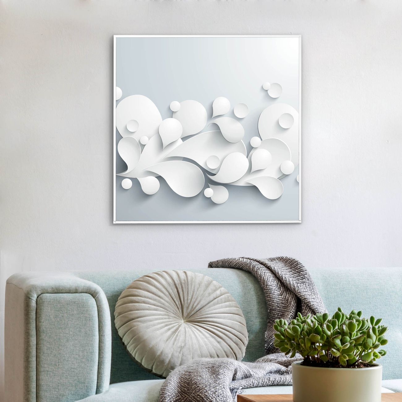 Mit der banjado smarten LED Wandleuchte mit Motiv Papiertropfen schaffen Sie in Ihren Räumen eine besondere Atmosphäre. Abends spendet die Wandlampe Licht und tagsüber haben Sie ein stimmungsvolles Wandbild. Die Leuchte besteht aus einem zeitlosen weißen Rahmen, in den das smarte WLAN LED Paneel sowie das Bild eingefasst wird. Die Montage ist denkbar einfach, Sie erhalten eine detaillierte Aufbauanleitung sowie Montagematerial. Eine angenehme Lichtquelle erhöht nachweislich das Wohlbefinden. Das Motiv der Leuchte lässt sich leicht wechseln, so können Sie Ihre Wohnräume individuell gestalten. Die Montage ist an der Wand oder an der Decke möglich.