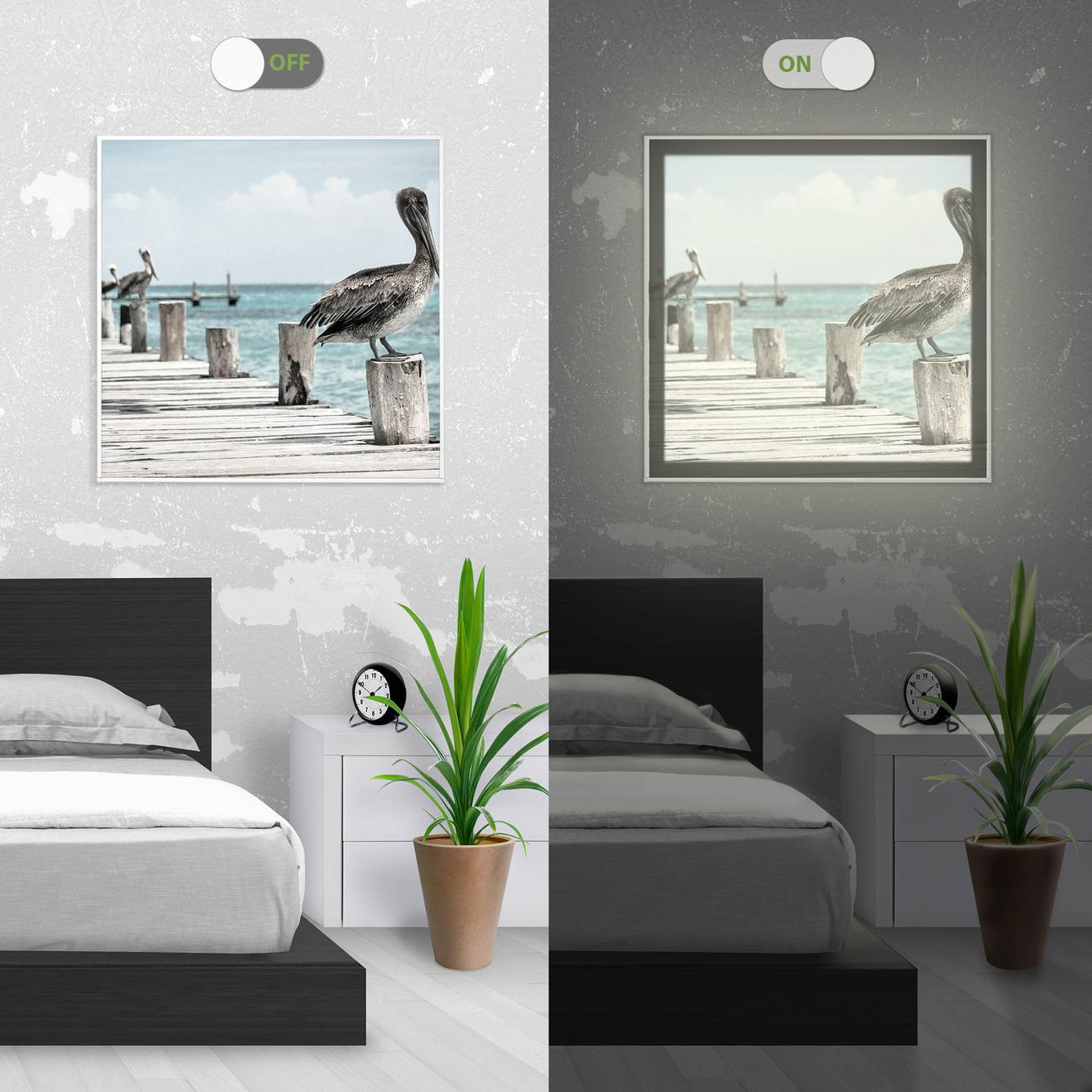 Im eingeschalteten Zustand wirft das Bild einen Schatten wie in der ersten Ansicht zu sehen.
