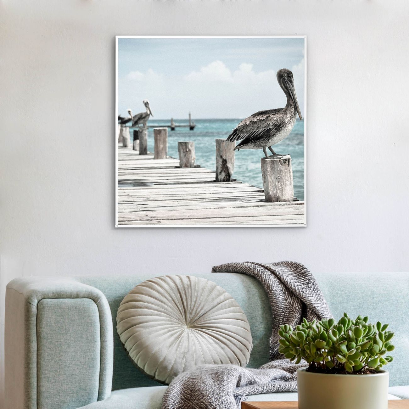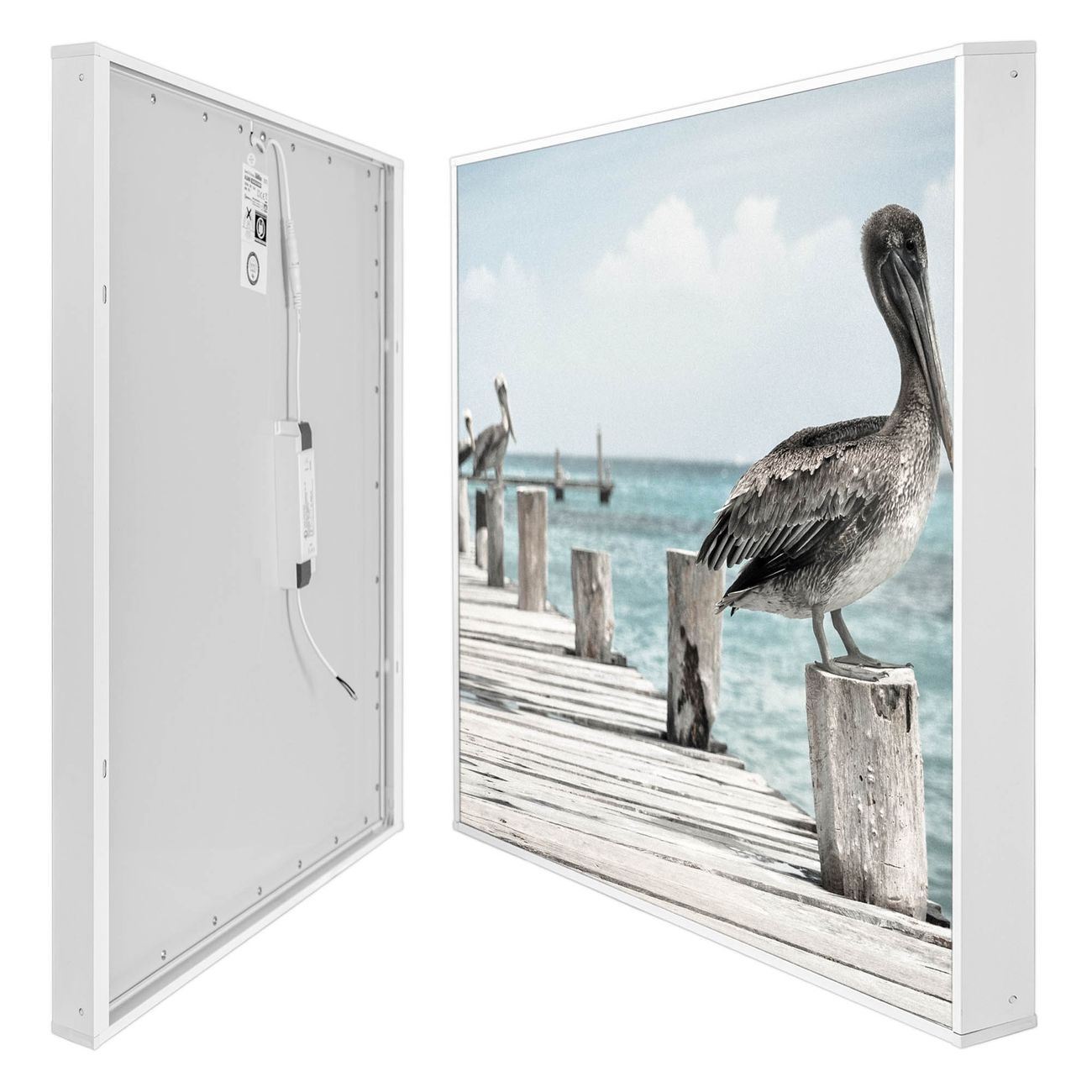 banjado LED Wandleuchte Sie erhalten hier eine stimmungsvolle Lichtquelle bestehend aus dem Set: Smart LED Panel mit Trafo, Motivscheibe (Motiv: Pelikane) und Rahmen. Der Aufbau ist denkbar einfach, Sie erhalten eine detaillierte Aufbauanleitung. Die komplette Leuchte kann sowohl an der Wand angeschlossen werden als auch als Deckenleuchte. Die Gesamtgröße der Lampe ist 62,5 x 62,5 x 4,5cm (HxBxT). Das Set besteht aus: LED Panel mit Trafo, Rahmen und Motivbild zum Selbstaufbau.