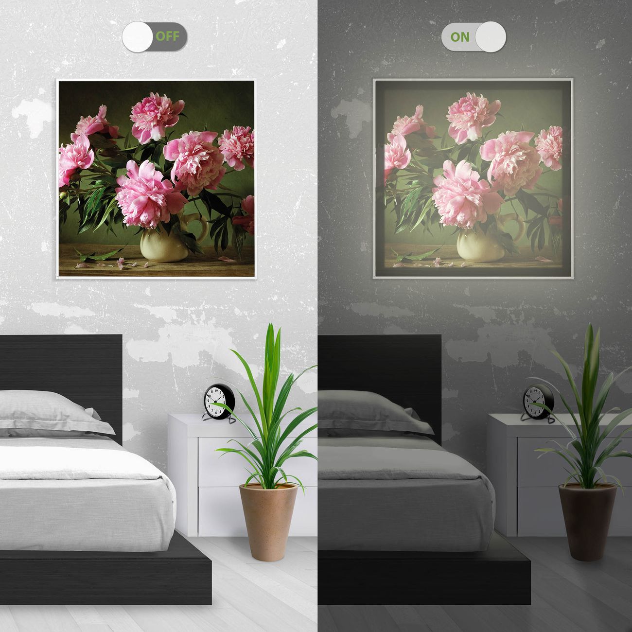 Im eingeschalteten Zustand wirft das Bild einen Schatten wie in der ersten Ansicht zu sehen.