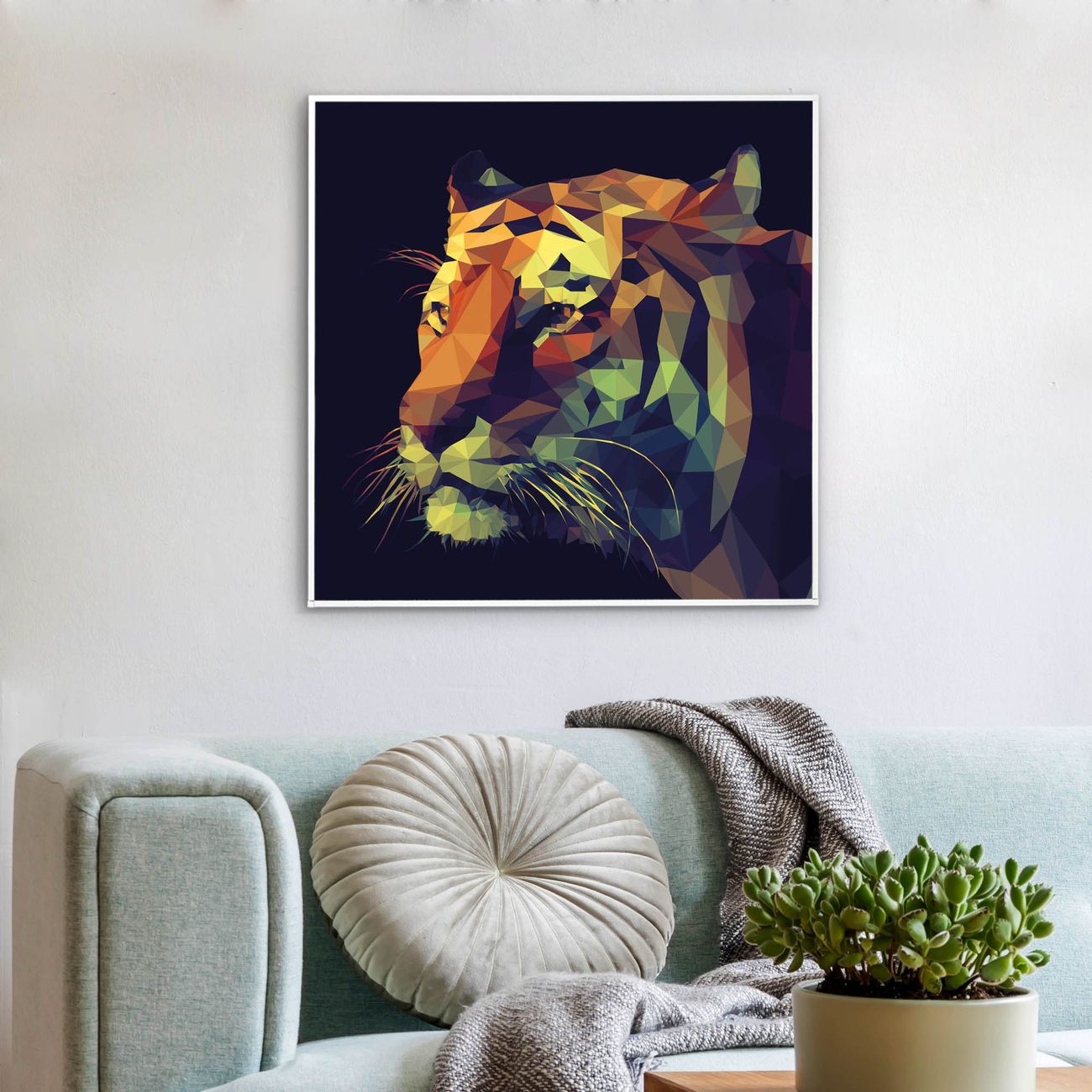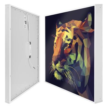 Mit der banjado smarten LED Wandleuchte mit Motiv Polygon Tiger schaffen Sie in Ihren Räumen eine besondere Atmosphäre. Abends spendet die Wandlampe Licht und tagsüber haben Sie ein stimmungsvolles Wandbild. Die Leuchte besteht aus einem zeitlosen weißen Rahmen, in den das smarte WLAN LED Paneel sowie das Bild eingefasst wird. Die Montage ist denkbar einfach, Sie erhalten eine detaillierte Aufbauanleitung sowie Montagematerial. Eine angenehme Lichtquelle erhöht nachweislich das Wohlbefinden. Das Motiv der Leuchte lässt sich leicht wechseln, so können Sie Ihre Wohnräume individuell gestalten. Die Montage ist an der Wand oder an der Decke möglich.