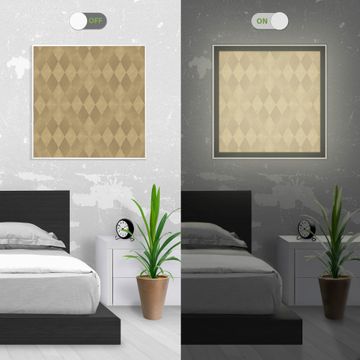 Mit der banjado smarten LED Wandleuchte mit Motiv Rauten Metall schaffen Sie in Ihren Räumen eine besondere Atmosphäre. Abends spendet die Wandlampe Licht und tagsüber haben Sie ein stimmungsvolles Wandbild. Die Leuchte besteht aus einem zeitlosen weißen Rahmen, in den das smarte WLAN LED Paneel sowie das Bild eingefasst wird. Die Montage ist denkbar einfach, Sie erhalten eine detaillierte Aufbauanleitung sowie Montagematerial. Eine angenehme Lichtquelle erhöht nachweislich das Wohlbefinden. Das Motiv der Leuchte lässt sich leicht wechseln, so können Sie Ihre Wohnräume individuell gestalten. Die Montage ist an der Wand oder an der Decke möglich.