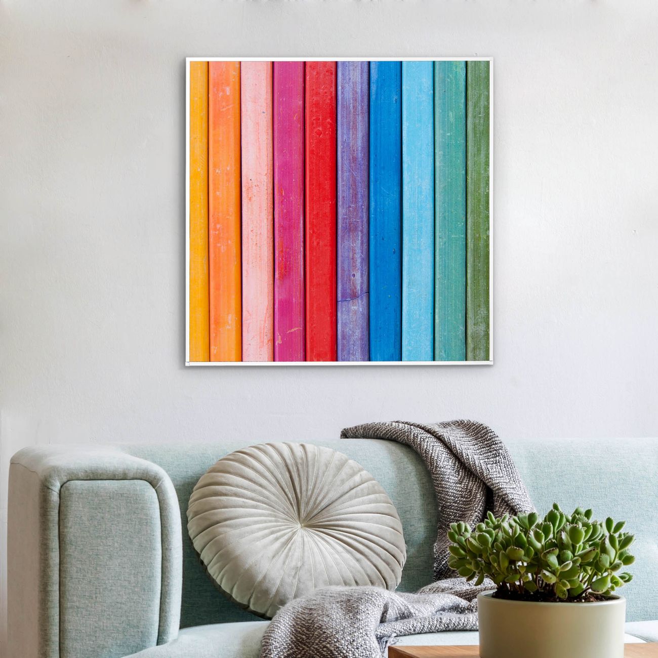 Mit der banjado smarten LED Wandleuchte mit Motiv Regenbogenfarben schaffen Sie in Ihren Räumen eine besondere Atmosphäre. Abends spendet die Wandlampe Licht und tagsüber haben Sie ein stimmungsvolles Wandbild. Die Leuchte besteht aus einem zeitlosen weißen Rahmen, in den das smarte WLAN LED Paneel sowie das Bild eingefasst wird. Die Montage ist denkbar einfach, Sie erhalten eine detaillierte Aufbauanleitung sowie Montagematerial. Eine angenehme Lichtquelle erhöht nachweislich das Wohlbefinden. Das Motiv der Leuchte lässt sich leicht wechseln, so können Sie Ihre Wohnräume individuell gestalten. Die Montage ist an der Wand oder an der Decke möglich.