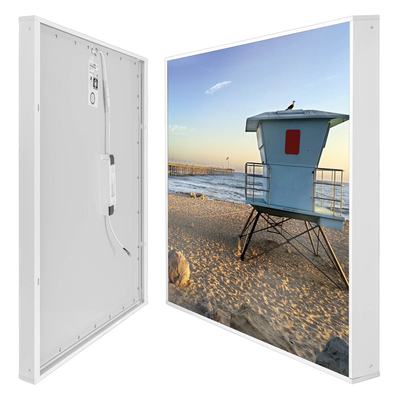 Mit der banjado smarten LED Wandleuchte mit Motiv Rettungsturm schaffen Sie in Ihren Räumen eine besondere Atmosphäre. Abends spendet die Wandlampe Licht und tagsüber haben Sie ein stimmungsvolles Wandbild. Die Leuchte besteht aus einem zeitlosen weißen Rahmen, in den das smarte WLAN LED Paneel sowie das Bild eingefasst wird. Die Montage ist denkbar einfach, Sie erhalten eine detaillierte Aufbauanleitung sowie Montagematerial. Eine angenehme Lichtquelle erhöht nachweislich das Wohlbefinden. Das Motiv der Leuchte lässt sich leicht wechseln, so können Sie Ihre Wohnräume individuell gestalten. Die Montage ist an der Wand oder an der Decke möglich.