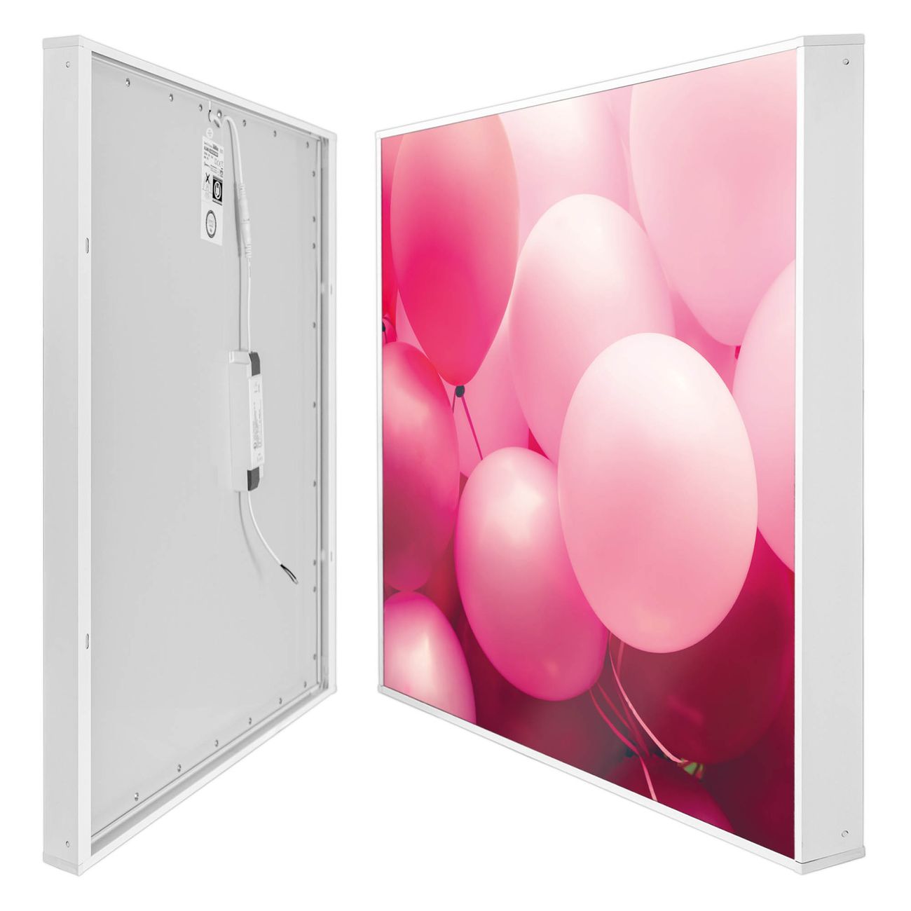 banjado LED Wandleuchte Sie erhalten hier eine stimmungsvolle Lichtquelle bestehend aus dem Set: Smart LED Panel mit Trafo, Motivscheibe (Motiv: Rosa Ballons 2) und Rahmen. Der Aufbau ist denkbar einfach, Sie erhalten eine detaillierte Aufbauanleitung. Die komplette Leuchte kann sowohl an der Wand angeschlossen werden als auch als Deckenleuchte. Die Gesamtgröße der Lampe ist 62,5 x 62,5 x 4,5cm (HxBxT). Das Set besteht aus: LED Panel mit Trafo, Rahmen und Motivbild zum Selbstaufbau.