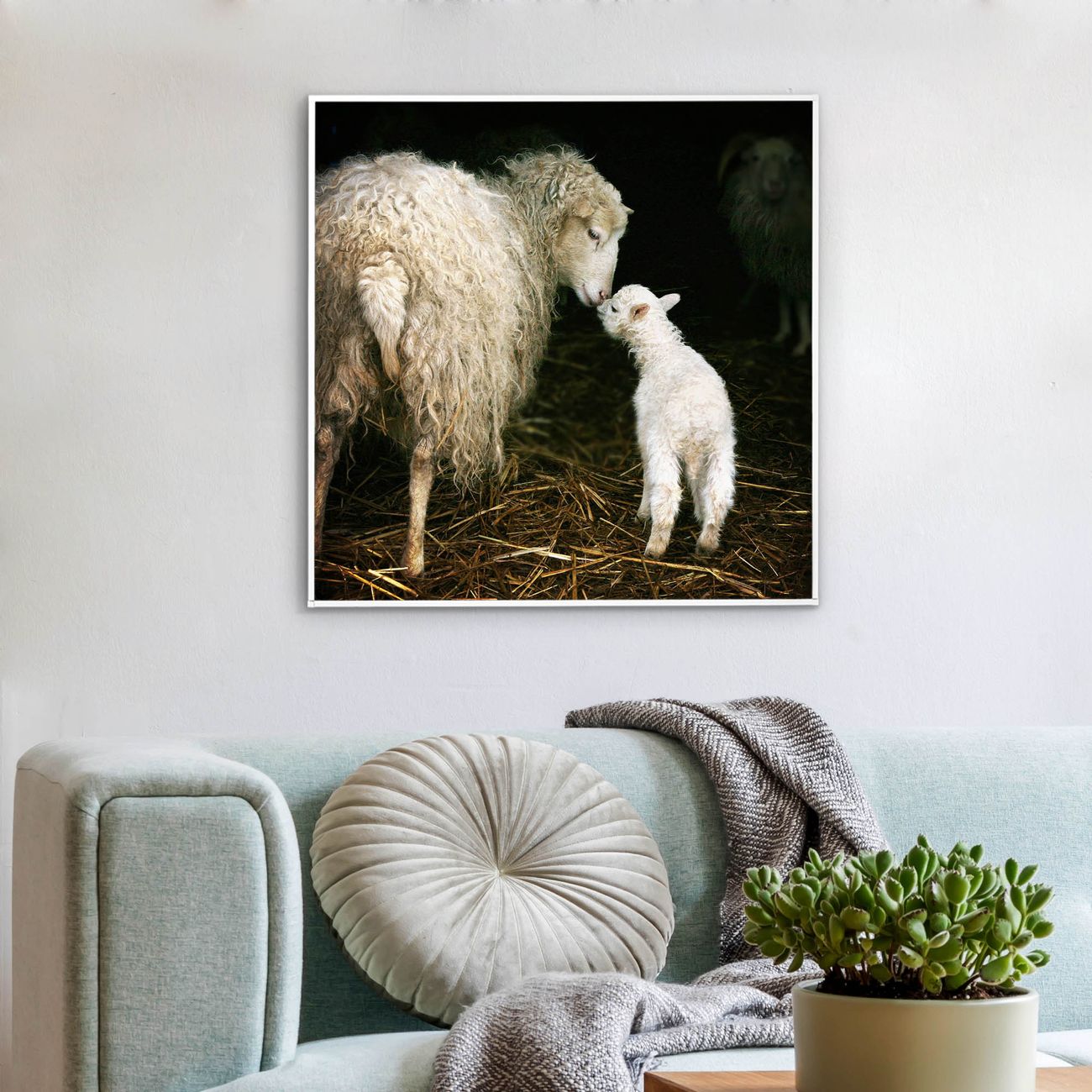 Mit der banjado smarten LED Wandleuchte mit Motiv Schaf Und Lamm schaffen Sie in Ihren Räumen eine besondere Atmosphäre. Abends spendet die Wandlampe Licht und tagsüber haben Sie ein stimmungsvolles Wandbild. Die Leuchte besteht aus einem zeitlosen weißen Rahmen, in den das smarte WLAN LED Paneel sowie das Bild eingefasst wird. Die Montage ist denkbar einfach, Sie erhalten eine detaillierte Aufbauanleitung sowie Montagematerial. Eine angenehme Lichtquelle erhöht nachweislich das Wohlbefinden. Das Motiv der Leuchte lässt sich leicht wechseln, so können Sie Ihre Wohnräume individuell gestalten. Die Montage ist an der Wand oder an der Decke möglich.