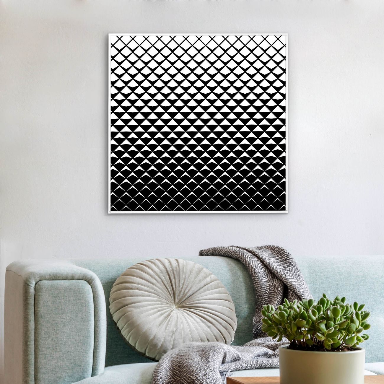 Mit der banjado smarten LED Wandleuchte mit Motiv Schattierung schaffen Sie in Ihren Räumen eine besondere Atmosphäre. Abends spendet die Wandlampe Licht und tagsüber haben Sie ein stimmungsvolles Wandbild. Die Leuchte besteht aus einem zeitlosen weißen Rahmen, in den das smarte WLAN LED Paneel sowie das Bild eingefasst wird. Die Montage ist denkbar einfach, Sie erhalten eine detaillierte Aufbauanleitung sowie Montagematerial. Eine angenehme Lichtquelle erhöht nachweislich das Wohlbefinden. Das Motiv der Leuchte lässt sich leicht wechseln, so können Sie Ihre Wohnräume individuell gestalten. Die Montage ist an der Wand oder an der Decke möglich.