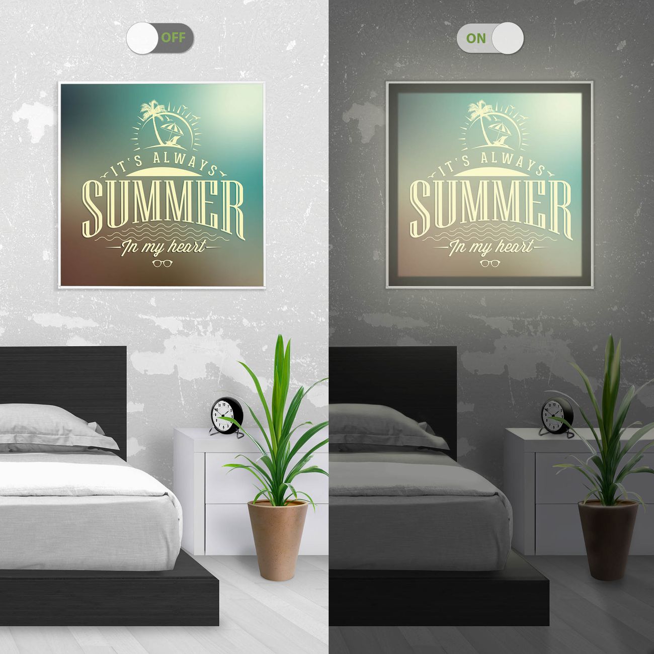 - Aussehen: Tags ein Wandbild, Nachts eine Lampe