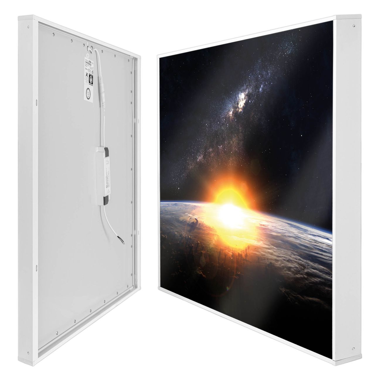 banjado LED Wandleuchte Sie erhalten hier eine stimmungsvolle Lichtquelle bestehend aus dem Set: Smart LED Panel mit Trafo, Motivscheibe (Motiv: Sonne im Weltall) und Rahmen. Der Aufbau ist denkbar einfach, Sie erhalten eine detaillierte Aufbauanleitung. Die komplette Leuchte kann sowohl an der Wand angeschlossen werden als auch als Deckenleuchte. Die Gesamtgröße der Lampe ist 62,5 x 62,5 x 4,5cm (HxBxT). Das Set besteht aus: LED Panel mit Trafo, Rahmen und Motivbild zum Selbstaufbau.