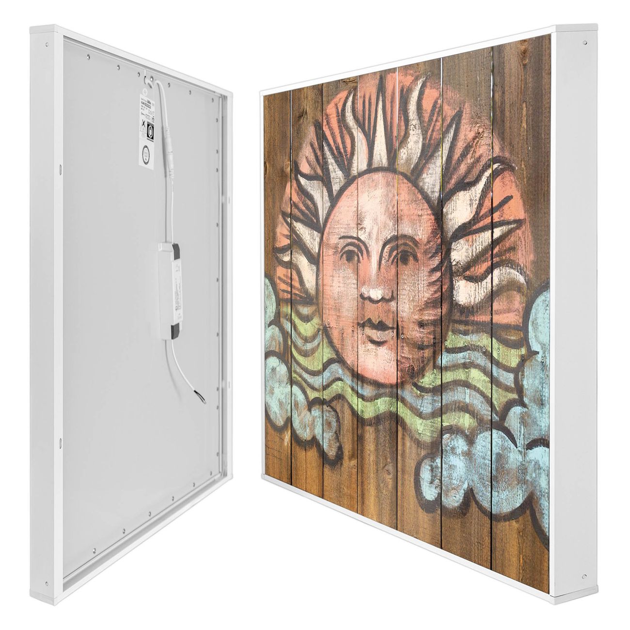 banjado LED Wandleuchte Sie erhalten hier eine stimmungsvolle Lichtquelle bestehend aus dem Set: Smart LED Panel mit Trafo, Motivscheibe (Motiv: Sonne) und Rahmen. Der Aufbau ist denkbar einfach, Sie erhalten eine detaillierte Aufbauanleitung. Die komplette Leuchte kann sowohl an der Wand angeschlossen werden als auch als Deckenleuchte. Die Gesamtgröße der Lampe ist 62,5 x 62,5 x 4,5cm (HxBxT). Das Set besteht aus: LED Panel mit Trafo, Rahmen und Motivbild zum Selbstaufbau.
