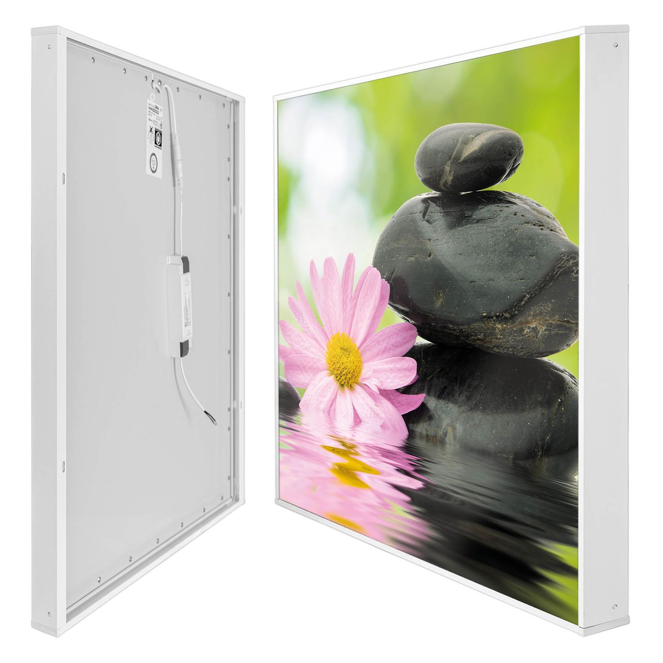 banjado LED Wandleuchte Sie erhalten hier eine stimmungsvolle Lichtquelle bestehend aus dem Set: Smart LED Panel mit Trafo, Motivscheibe (Motiv: Steine & Relax 2) und Rahmen. Der Aufbau ist denkbar einfach, Sie erhalten eine detaillierte Aufbauanleitung. Die komplette Leuchte kann sowohl an der Wand angeschlossen werden als auch als Deckenleuchte. Die Gesamtgröße der Lampe ist 62,5 x 62,5 x 4,5cm (HxBxT). Das Set besteht aus: LED Panel mit Trafo, Rahmen und Motivbild zum Selbstaufbau.