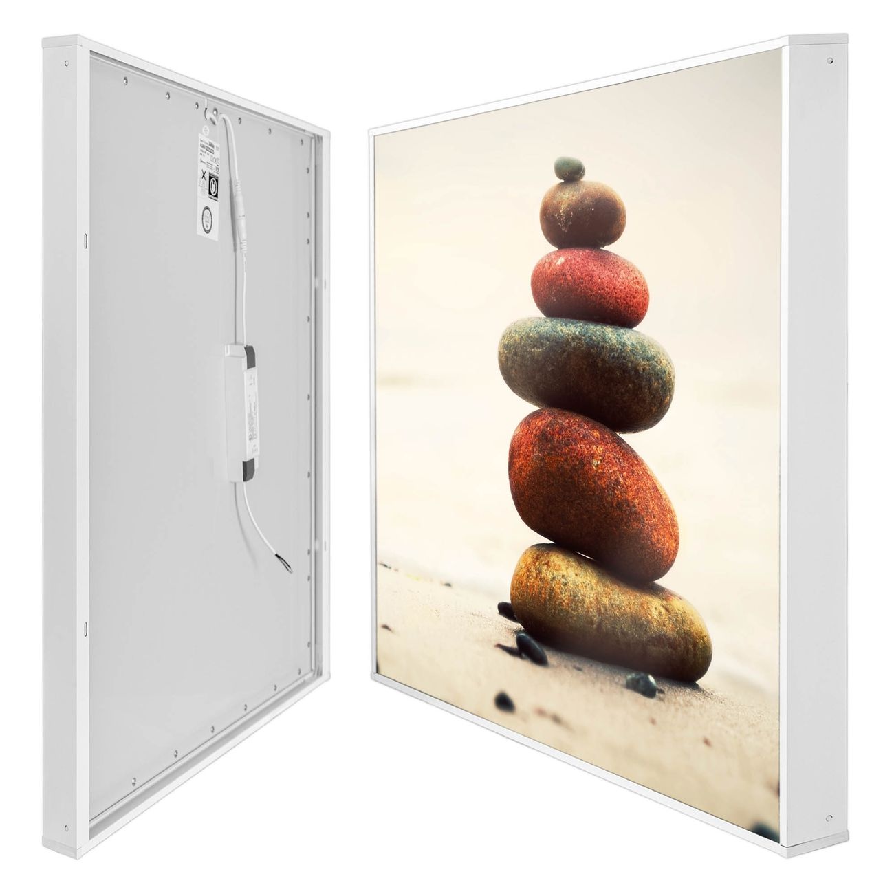 Mit der banjado smarten LED Wandleuchte mit Motiv Steinmännchen schaffen Sie in Ihren Räumen eine besondere Atmosphäre. Abends spendet die Wandlampe Licht und tagsüber haben Sie ein stimmungsvolles Wandbild. Die Leuchte besteht aus einem zeitlosen weißen Rahmen, in den das smarte WLAN LED Paneel sowie das Bild eingefasst wird. Die Montage ist denkbar einfach, Sie erhalten eine detaillierte Aufbauanleitung sowie Montagematerial. Eine angenehme Lichtquelle erhöht nachweislich das Wohlbefinden. Das Motiv der Leuchte lässt sich leicht wechseln, so können Sie Ihre Wohnräume individuell gestalten. Die Montage ist an der Wand oder an der Decke möglich.