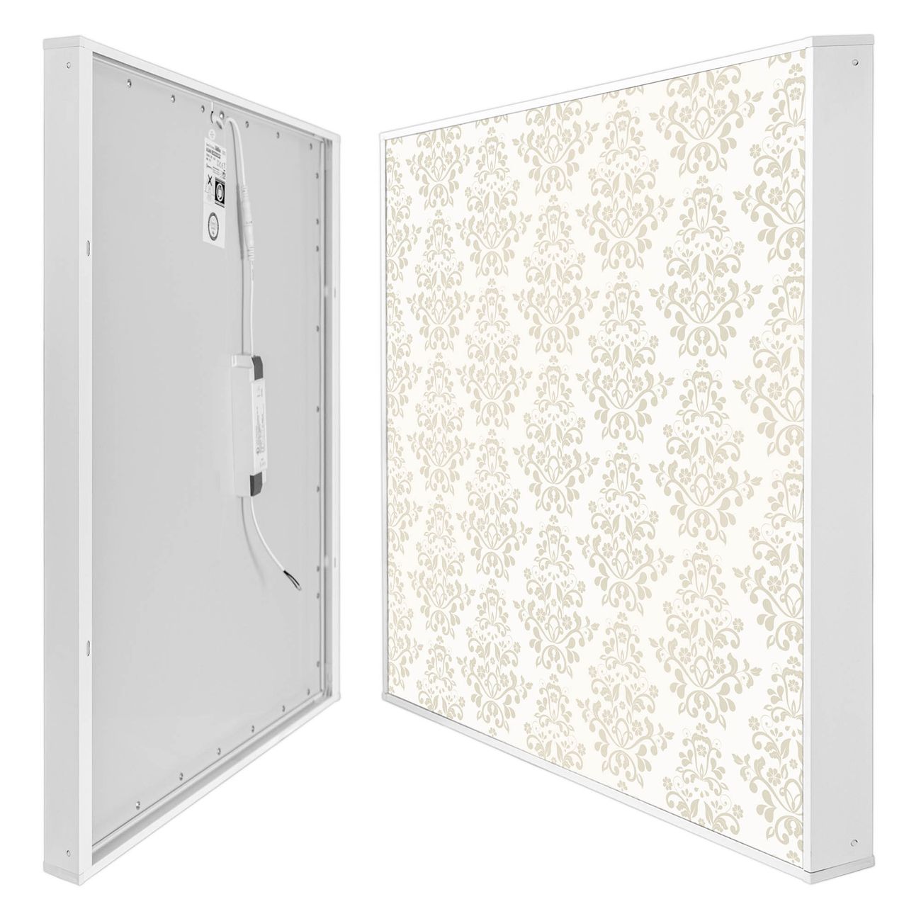 banjado LED Wandleuchte Sie erhalten hier eine stimmungsvolle Lichtquelle bestehend aus dem Set: Smart LED Panel mit Trafo, Motivscheibe (Motiv: Tapete Weiß) und Rahmen. Der Aufbau ist denkbar einfach, Sie erhalten eine detaillierte Aufbauanleitung. Die komplette Leuchte kann sowohl an der Wand angeschlossen werden als auch als Deckenleuchte. Die Gesamtgröße der Lampe ist 62,5 x 62,5 x 4,5cm (HxBxT). Das Set besteht aus: LED Panel mit Trafo, Rahmen und Motivbild zum Selbstaufbau.