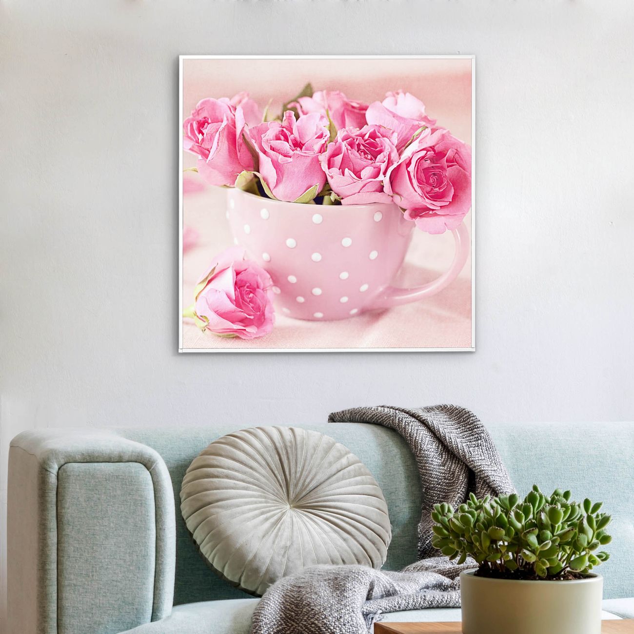Mit der banjado smarten LED Wandleuchte mit Motiv Tasse Voll Rosen schaffen Sie in Ihren Räumen eine besondere Atmosphäre. Abends spendet die Wandlampe Licht und tagsüber haben Sie ein stimmungsvolles Wandbild. Die Leuchte besteht aus einem zeitlosen weißen Rahmen, in den das smarte WLAN LED Paneel sowie das Bild eingefasst wird. Die Montage ist denkbar einfach, Sie erhalten eine detaillierte Aufbauanleitung sowie Montagematerial. Eine angenehme Lichtquelle erhöht nachweislich das Wohlbefinden. Das Motiv der Leuchte lässt sich leicht wechseln, so können Sie Ihre Wohnräume individuell gestalten. Die Montage ist an der Wand oder an der Decke möglich.