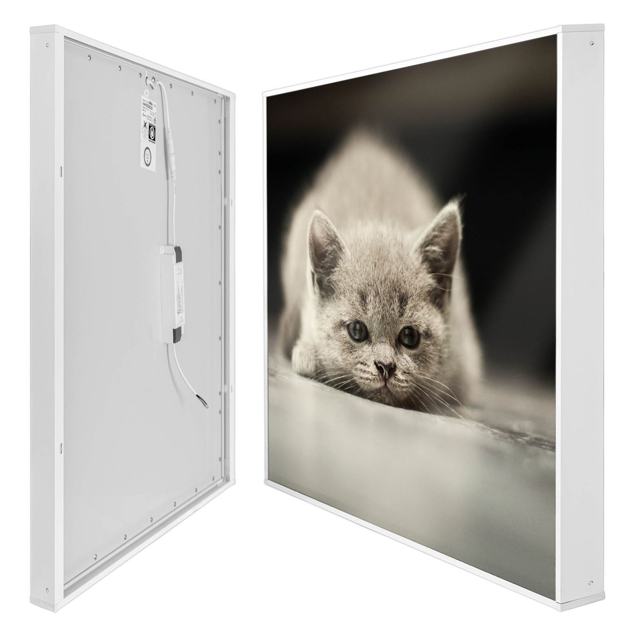 banjado LED Wandleuchte Sie erhalten hier eine stimmungsvolle Lichtquelle bestehend aus dem Set: Smart LED Panel mit Trafo, Motivscheibe (Motiv: Theodor) und Rahmen. Der Aufbau ist denkbar einfach, Sie erhalten eine detaillierte Aufbauanleitung. Die komplette Leuchte kann sowohl an der Wand angeschlossen werden als auch als Deckenleuchte. Die Gesamtgröße der Lampe ist 62,5 x 62,5 x 4,5cm (HxBxT). Das Set besteht aus: LED Panel mit Trafo, Rahmen und Motivbild zum Selbstaufbau.