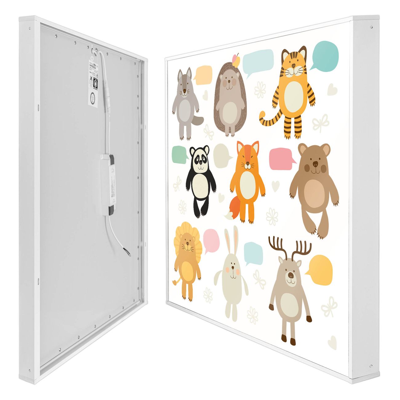 banjado LED Wandleuchte Sie erhalten hier eine stimmungsvolle Lichtquelle bestehend aus dem Set: Smart LED Panel mit Trafo, Motivscheibe (Motiv: Tierfreunde) und Rahmen. Der Aufbau ist denkbar einfach, Sie erhalten eine detaillierte Aufbauanleitung. Die komplette Leuchte kann sowohl an der Wand angeschlossen werden als auch als Deckenleuchte. Die Gesamtgröße der Lampe ist 62,5 x 62,5 x 4,5cm (HxBxT). Das Set besteht aus: LED Panel mit Trafo, Rahmen und Motivbild zum Selbstaufbau.